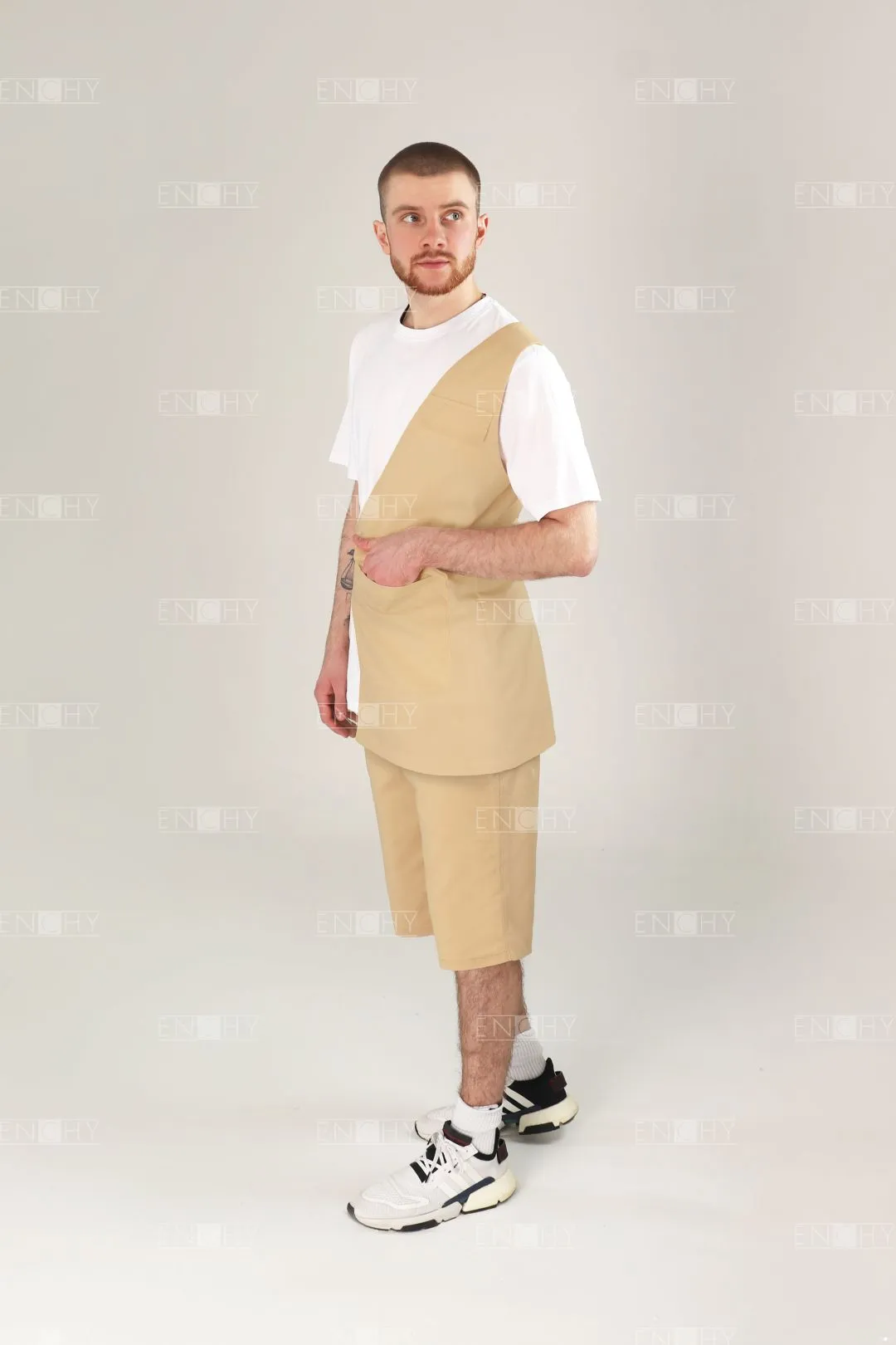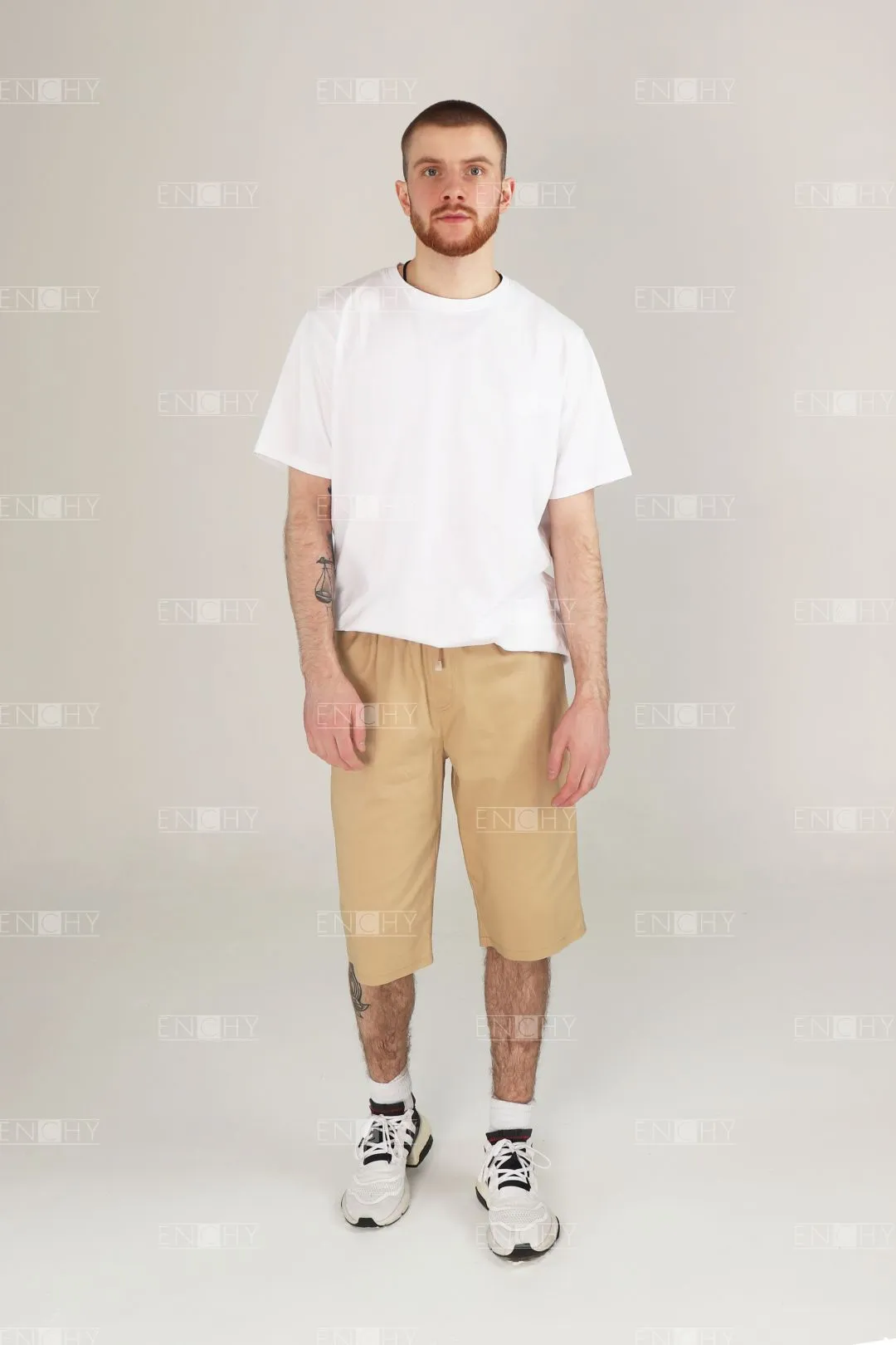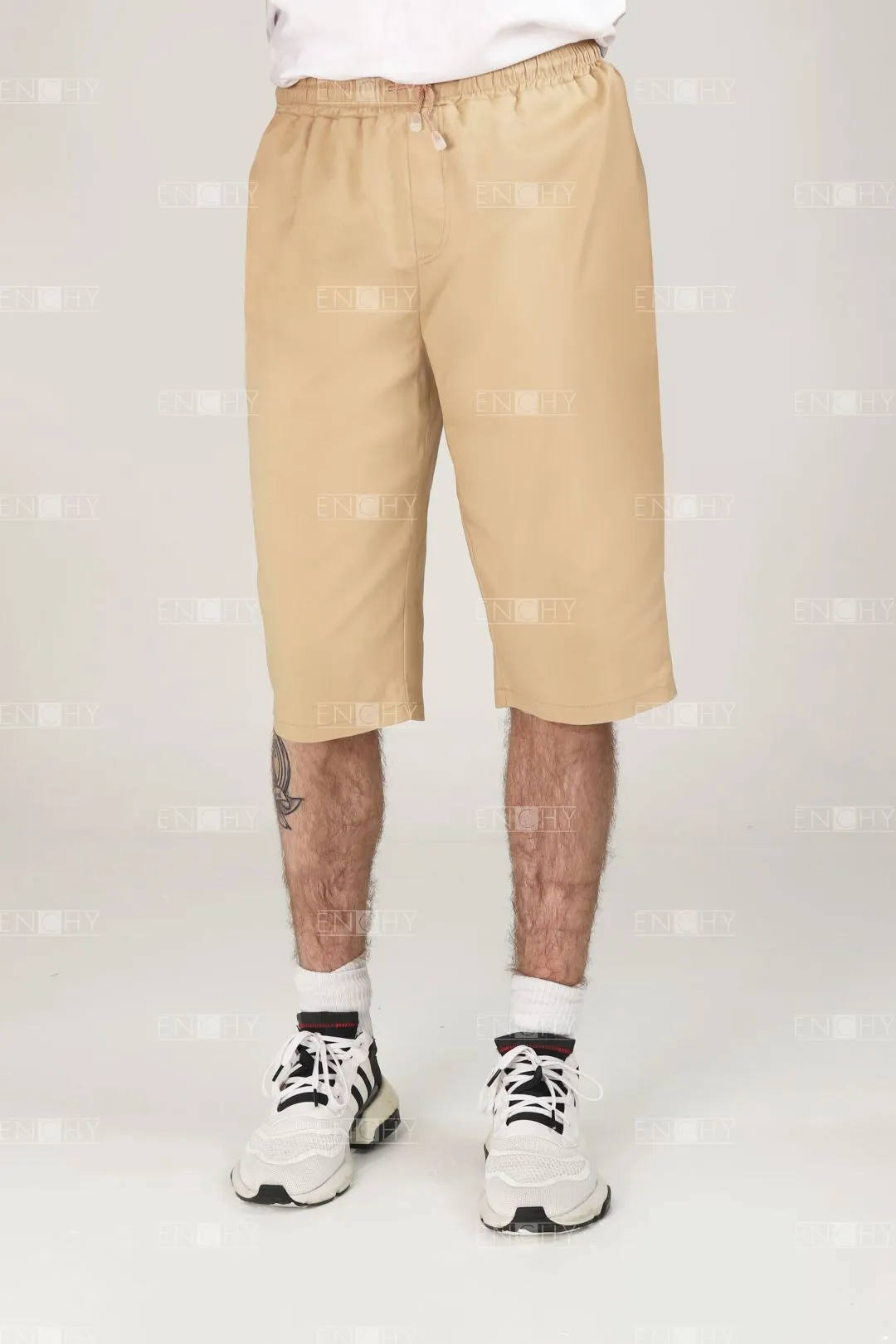 Мужские шорты длиной до середины колена. Шорты на резинке и шнурке, с накладным карманом на задней половинке шорт.