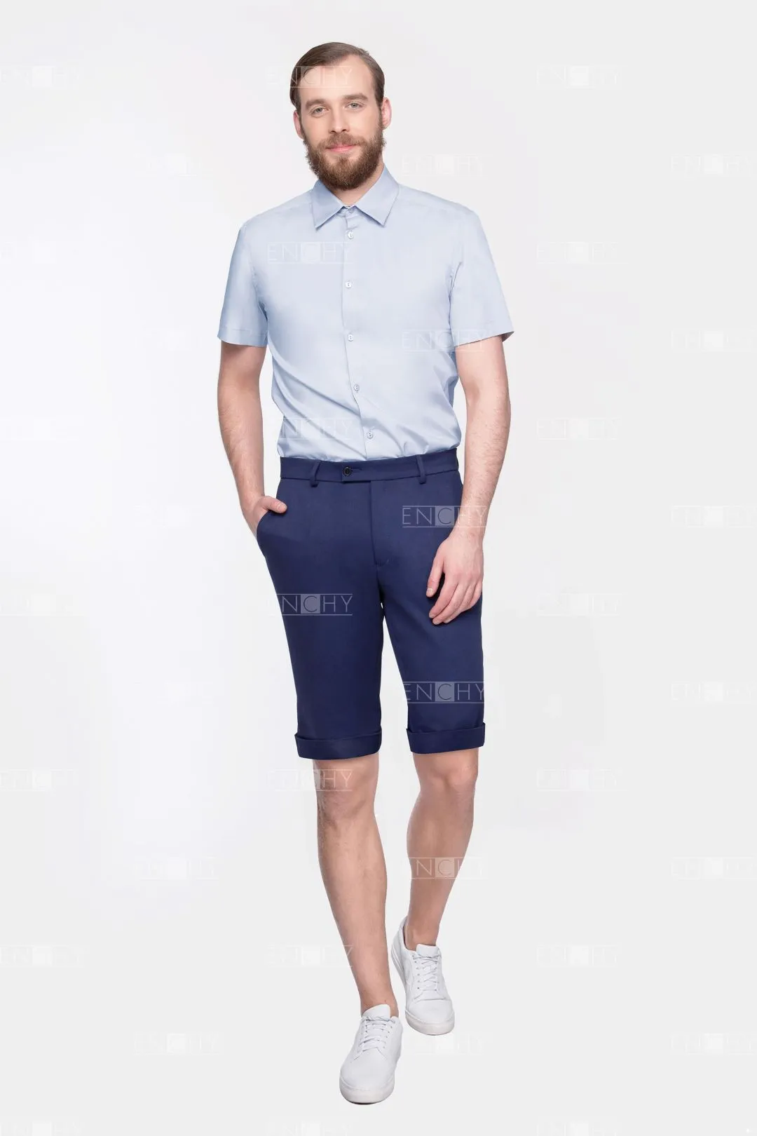 Шорты мужские классические с манжетами по низу. Карманы в отрезных бочках, 6 шлевок, застежка на гульфик и откосок. Современное решение для выбора летней униформы. Шорты могут быть выполнены из костюмной или рабочей ткани.