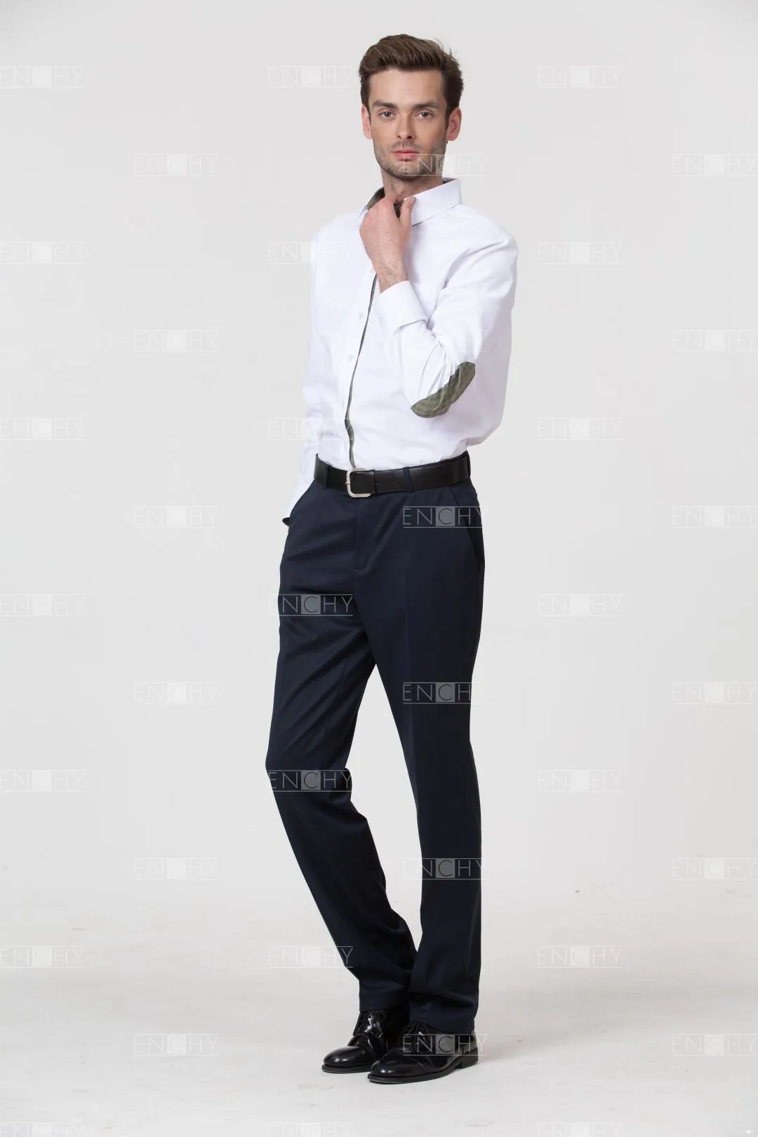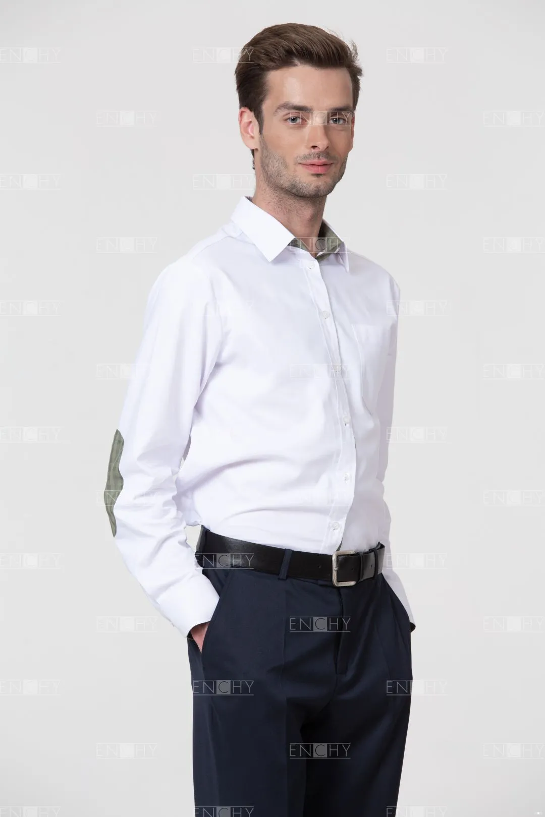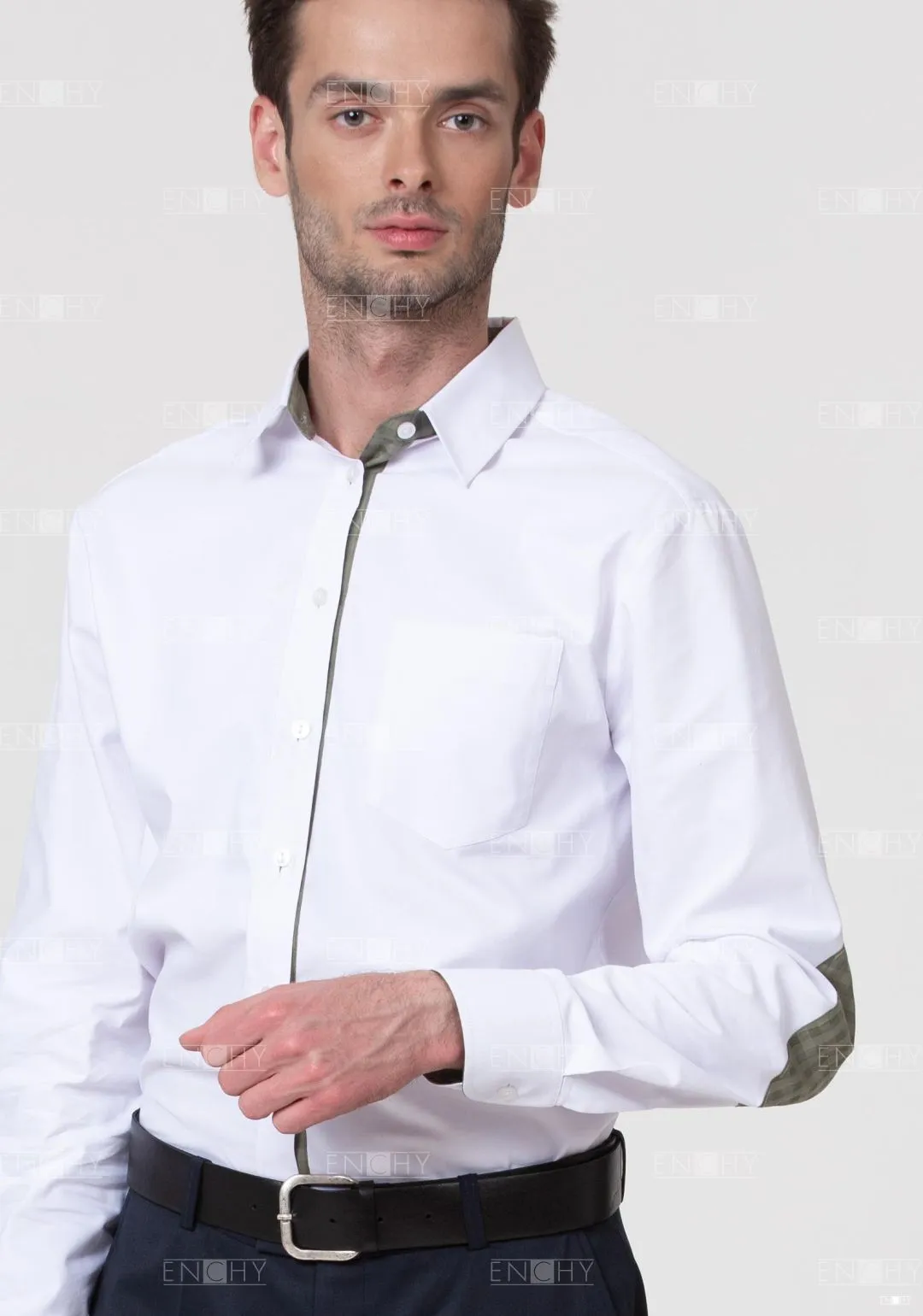 Сорочка-унисекс абсолютно вариативна! Модный прямой крой небольшого объема- такую рубашку рекомендуется носить также и девушкам (Арт.7034). Накладные детали на локтях можно сделать контрастного фирменного цвета, чтобы завершить стильный образ.