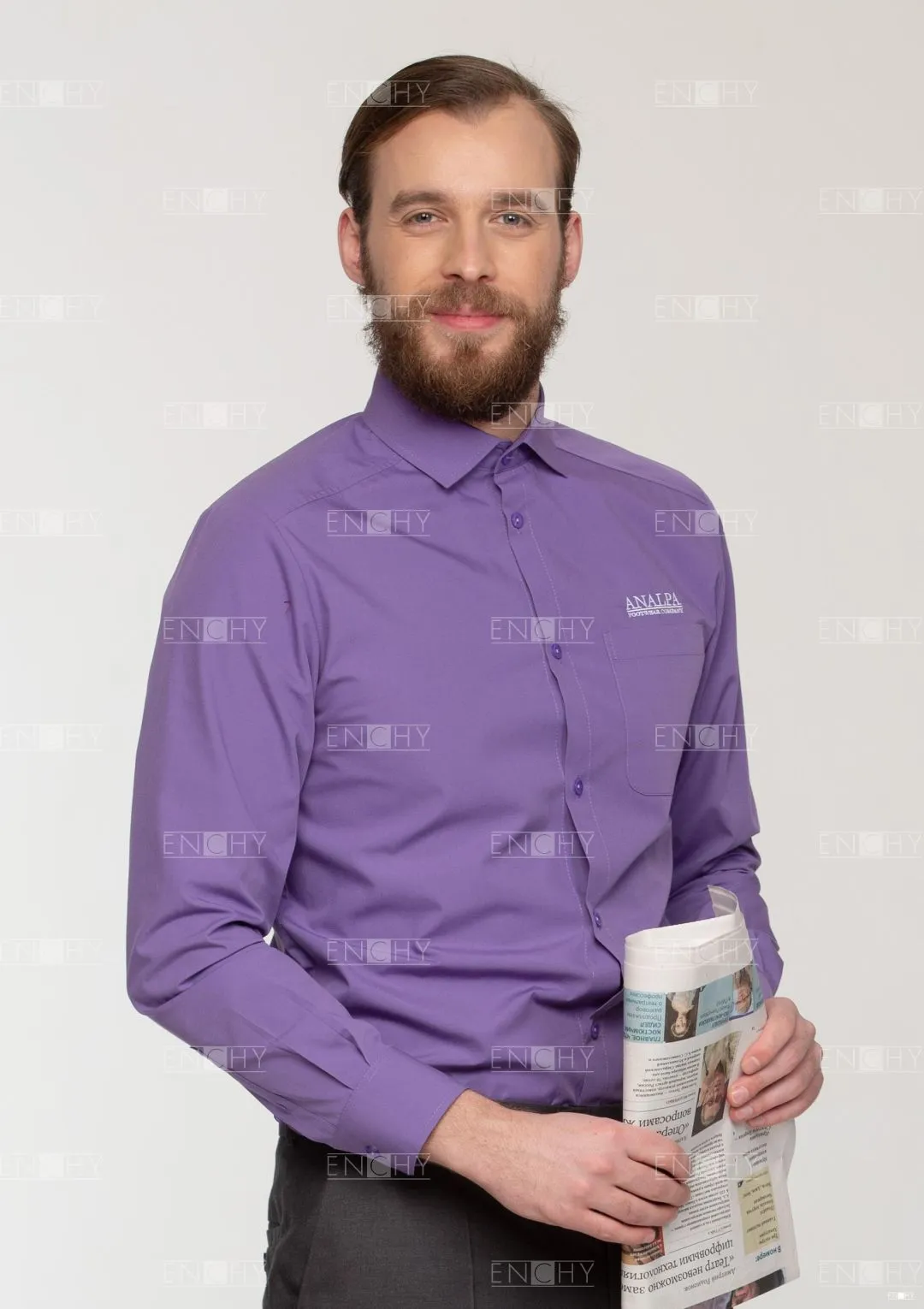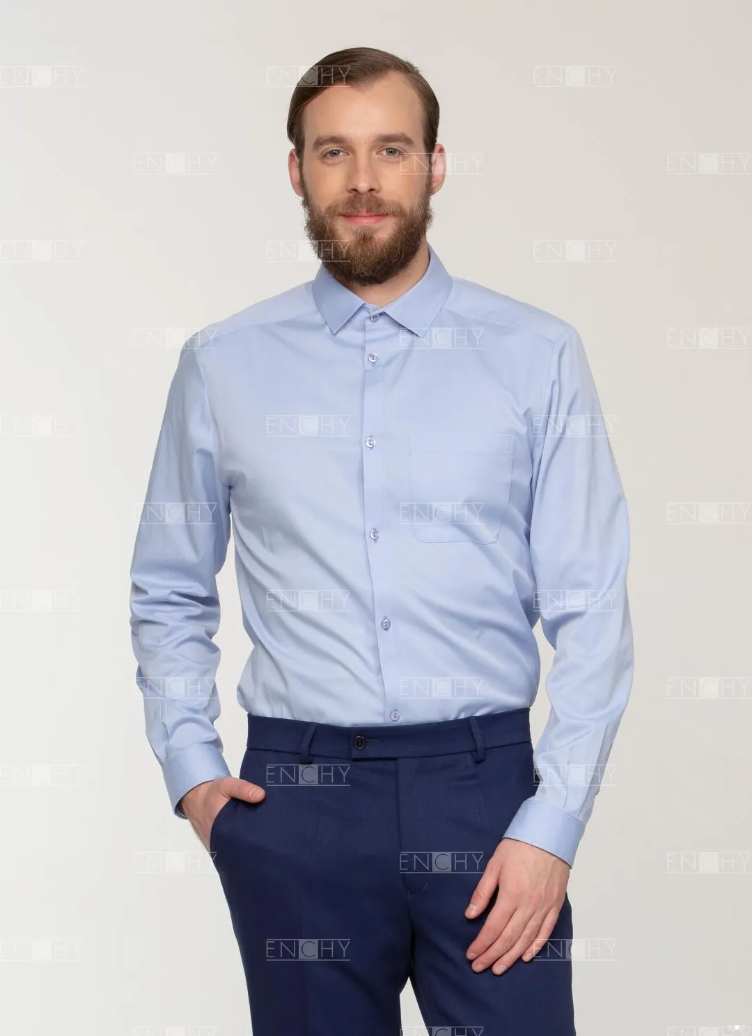 Простая сорочка прямого силуэта, небольшого объема и накладным карманом на груди. Длинный рукав заканчивается притачной манжетой с застежкой на 1 пуговицу. Аналог с коротким рукавом Арт.7503
