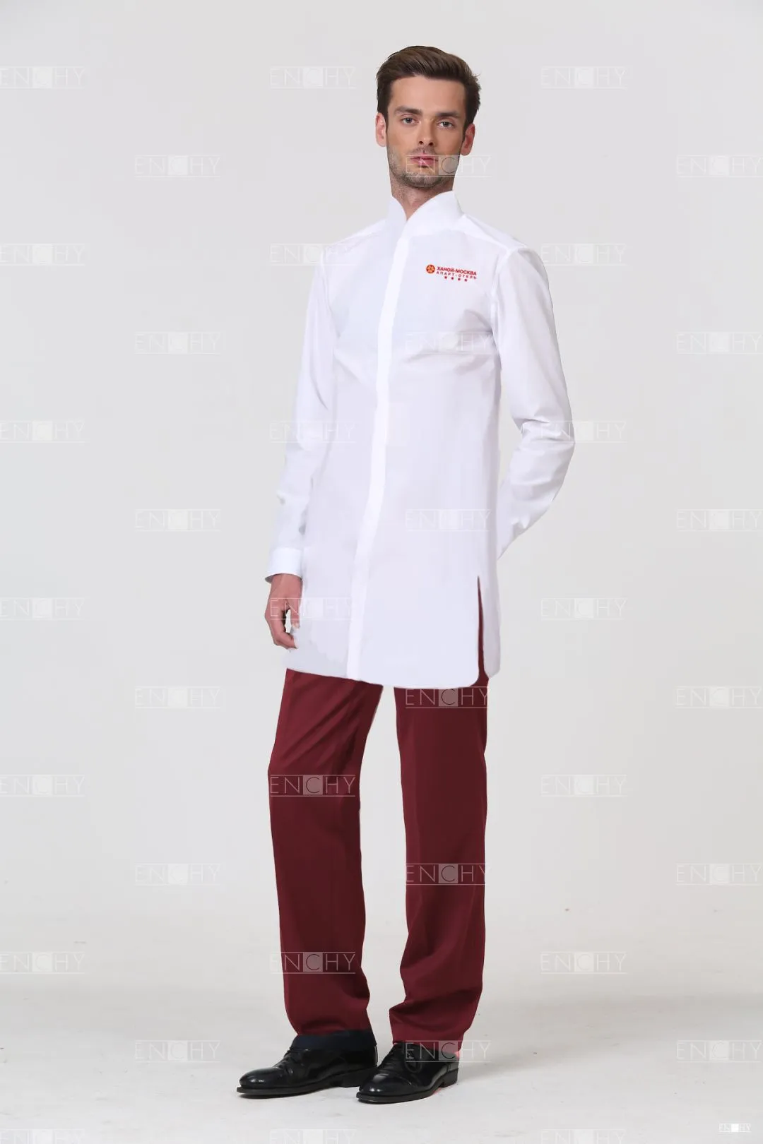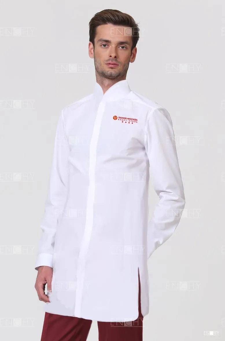 Мужская удлиненная сорочка- туника прямого силуэта. Перед с супатной застежкой, воротник стойка со скругленными концами, спинка с кокеткой и складкой для свободы движений — минималистичный и комфортный дизайн!