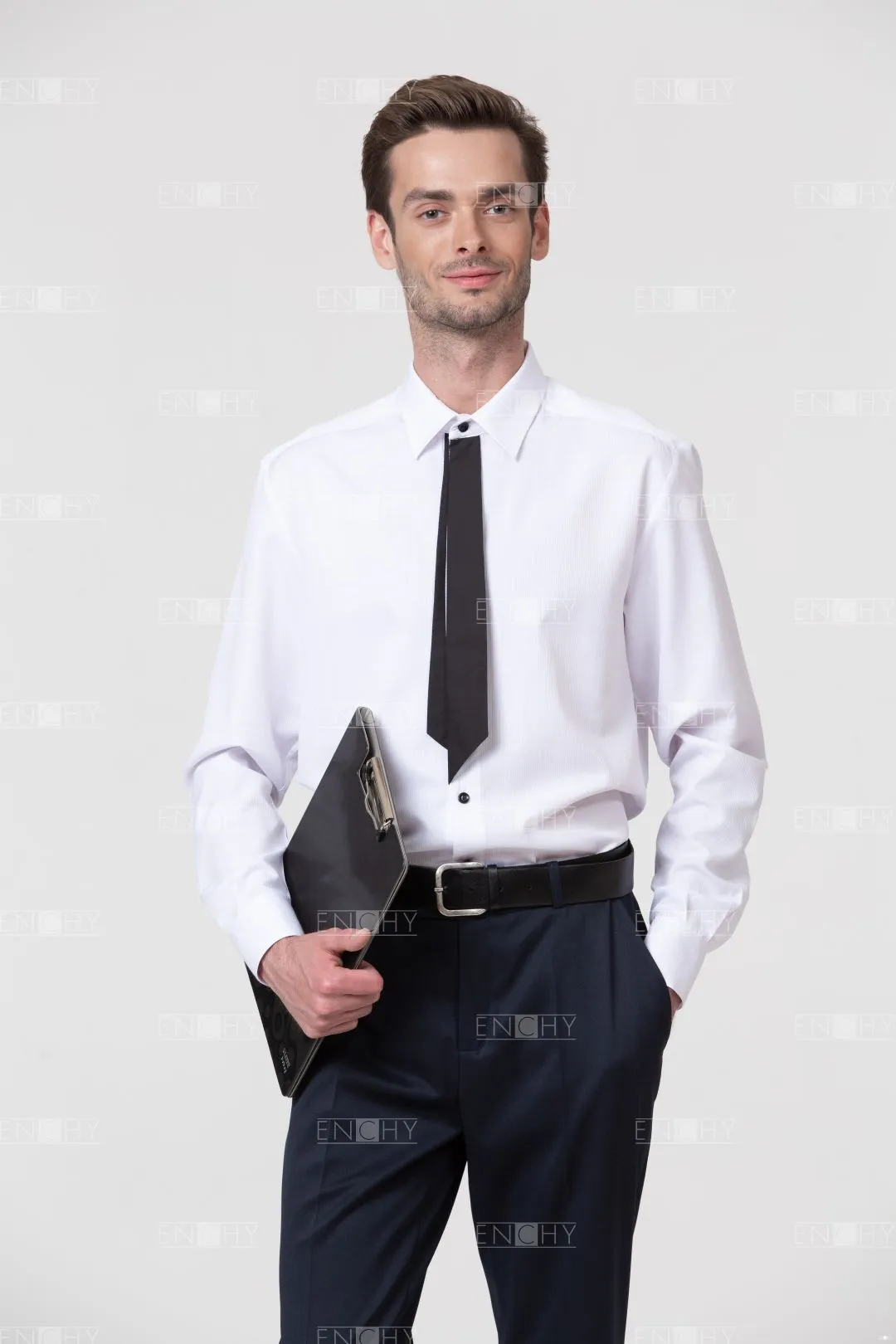 Удобный вшивной галстук и модный покрой: сзади вытачки для актуального приталивания по спинке. Такая полуприлегающая модель смотрится невероятно стильно! Застежка на пуговицы без планки. Манжет рукава со скосом уголка. Такая сорочка - превосходный корпоративный вариант мужской одежды.