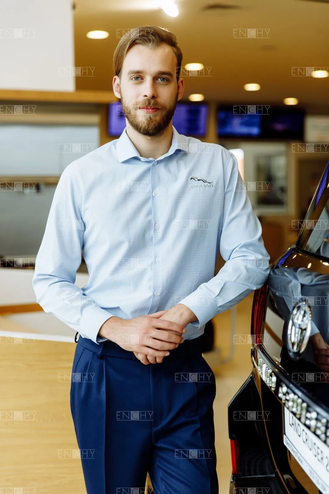 Сорочка силуэта слим-фит с приталенностью по боковым швам и талиевыми вытачками на спинке, такой крой оценят сотрудники молодого коллектива. Сорочка со стильным воротником-акулой на стойке и застежкой на пуговицы с притачной планкой.