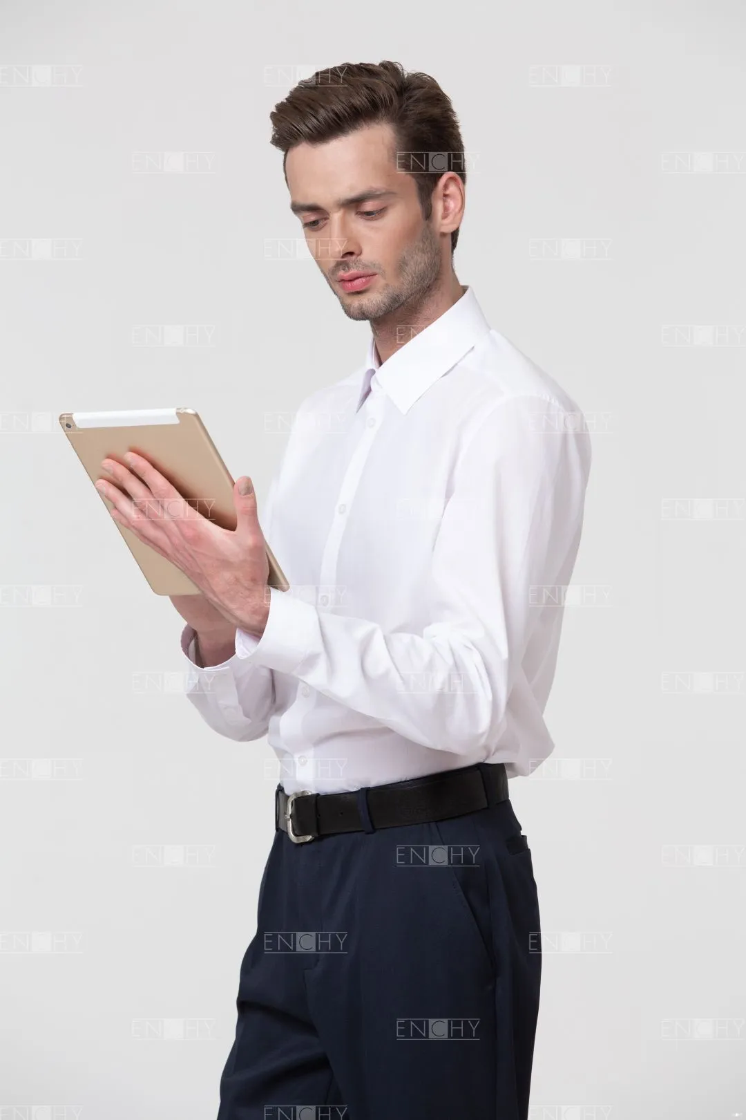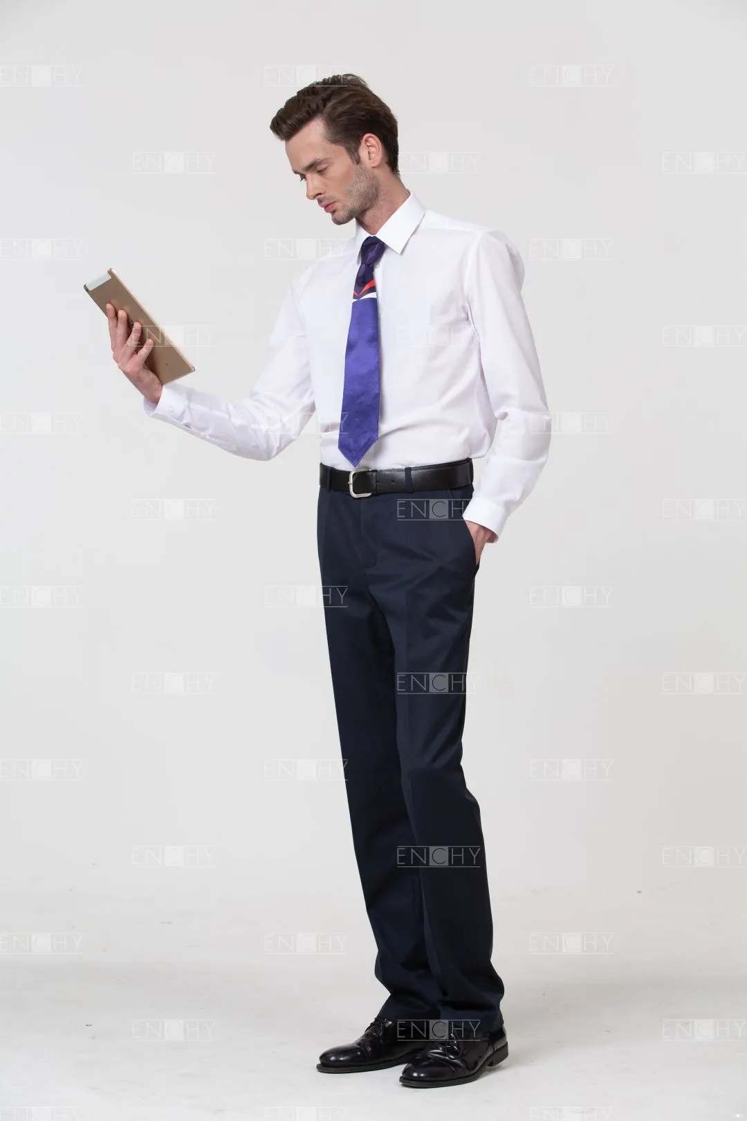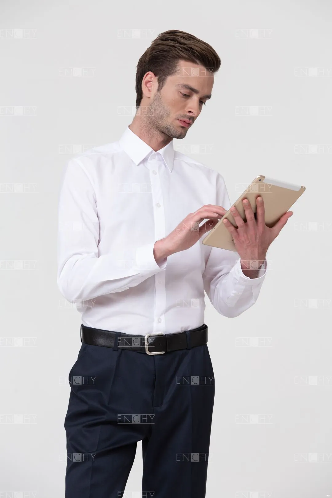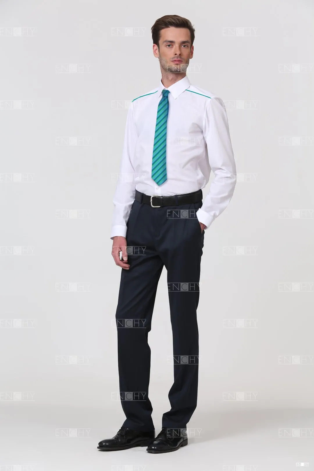 Сорочка силуэта слим-фит приталена по боковым швам и имеет рельефы и кокетку на спинке, такой крой оценят сотрудники молодого коллектива. Сорочка со стильным воротником на стойке и застежкой на пуговицы с классической планкой. Манжет рукава со скошенным уголом.