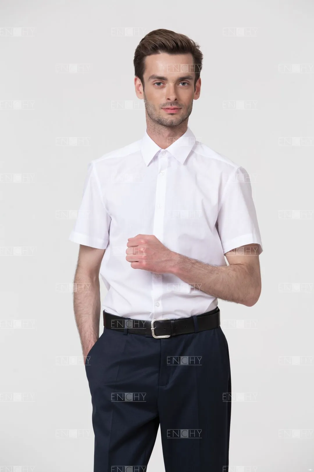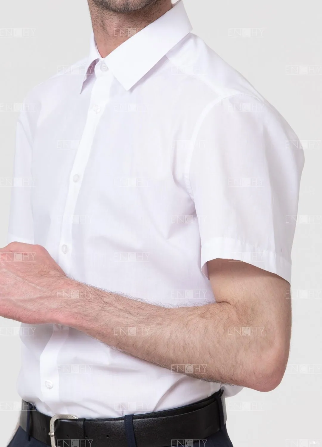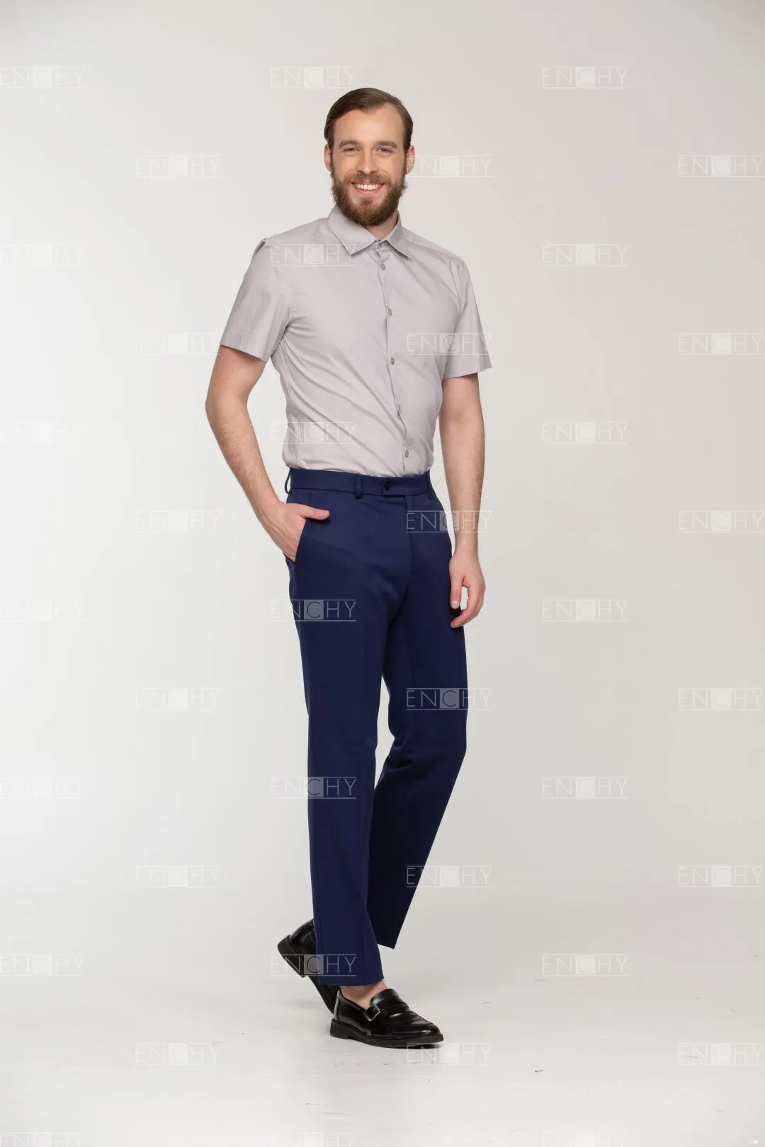 Сорочка полуприлегающего силуэта слим-фит с приталиванием по боковым швам и рельефами на спинке, такой крой оценят сотрудники молодого коллектива. Сорочка со стильным воротником на стойке и застежкой на пуговицы с классической планкой. Рукав втачной короткий.