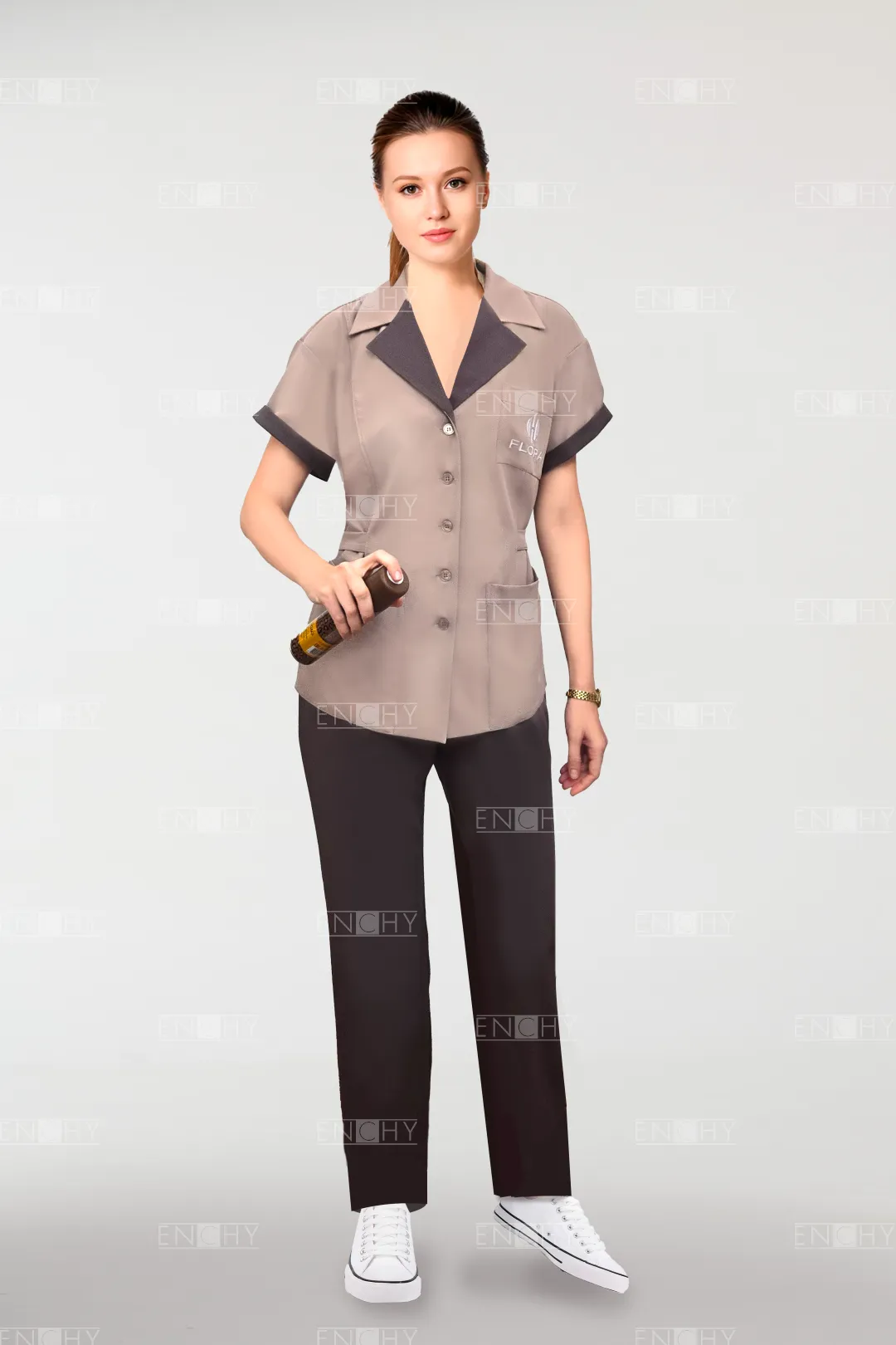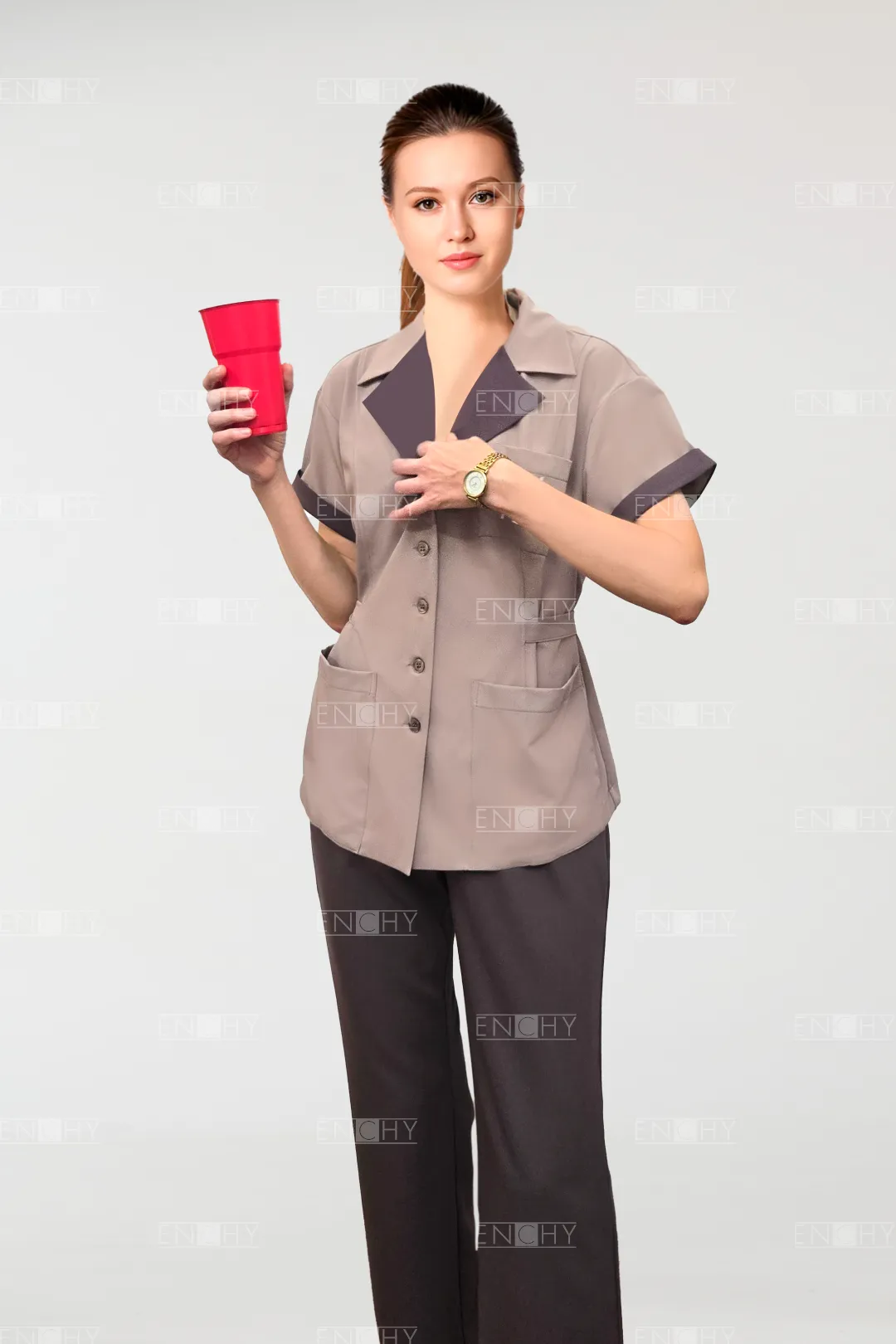 Стильная и функционаольная женская сервисная туника идеально подходит для работы в сфере обслуживания, медицины или гостиничного бизнеса. Эта туника сочетает в себе элегантный дизайн и практичность, обеспечивая комфорт на протяжении всего рабочего дня. Рельефные швы, просторные карманы и удобный пояс стали идеальным дополнением к дизайну изделия.