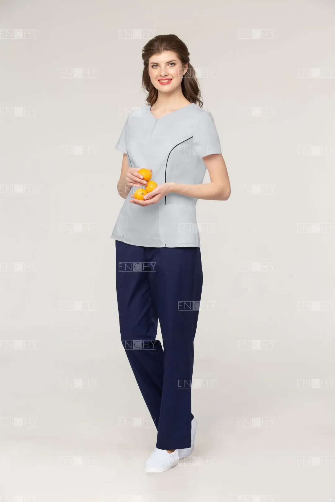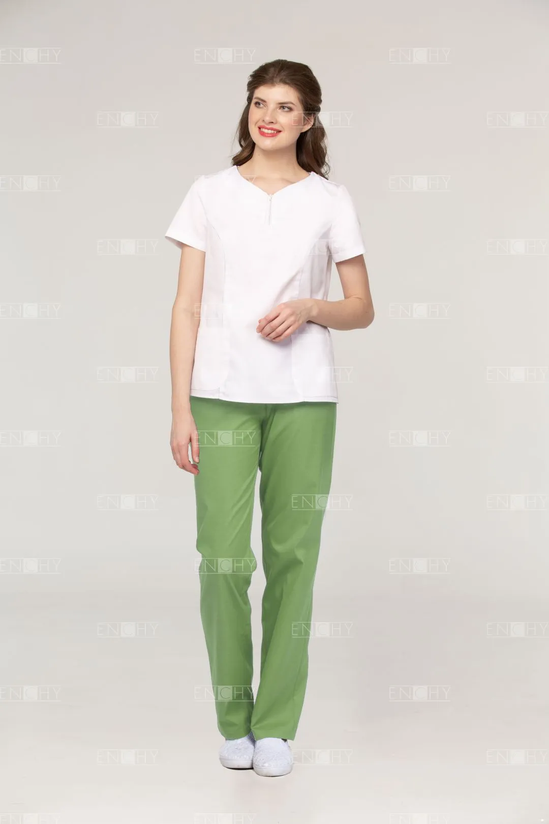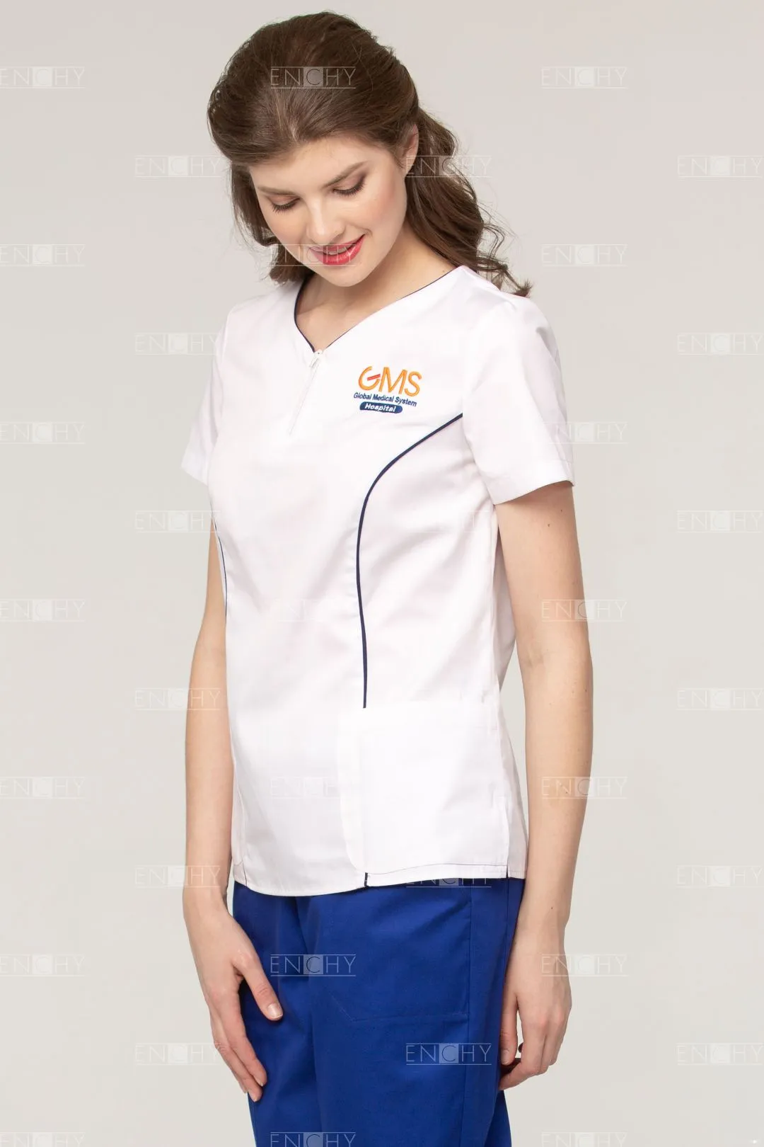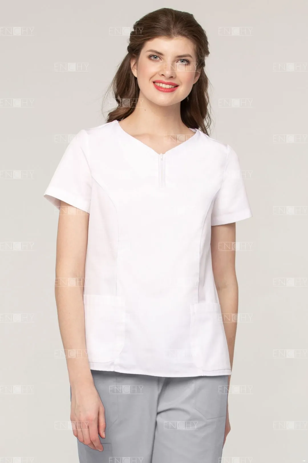 Полуприлегающая туника с V-образным вырезом с застежкой на молнию, накладными карманами, рельефами на переде и талиевыми вытачками сзади. Короткий рукав и разрезы в боковых швах делают тунику удобной для работы. Внешний вид великолепно дополнят канты в рельефах и по горловине в фирменном цвете вашей компании.