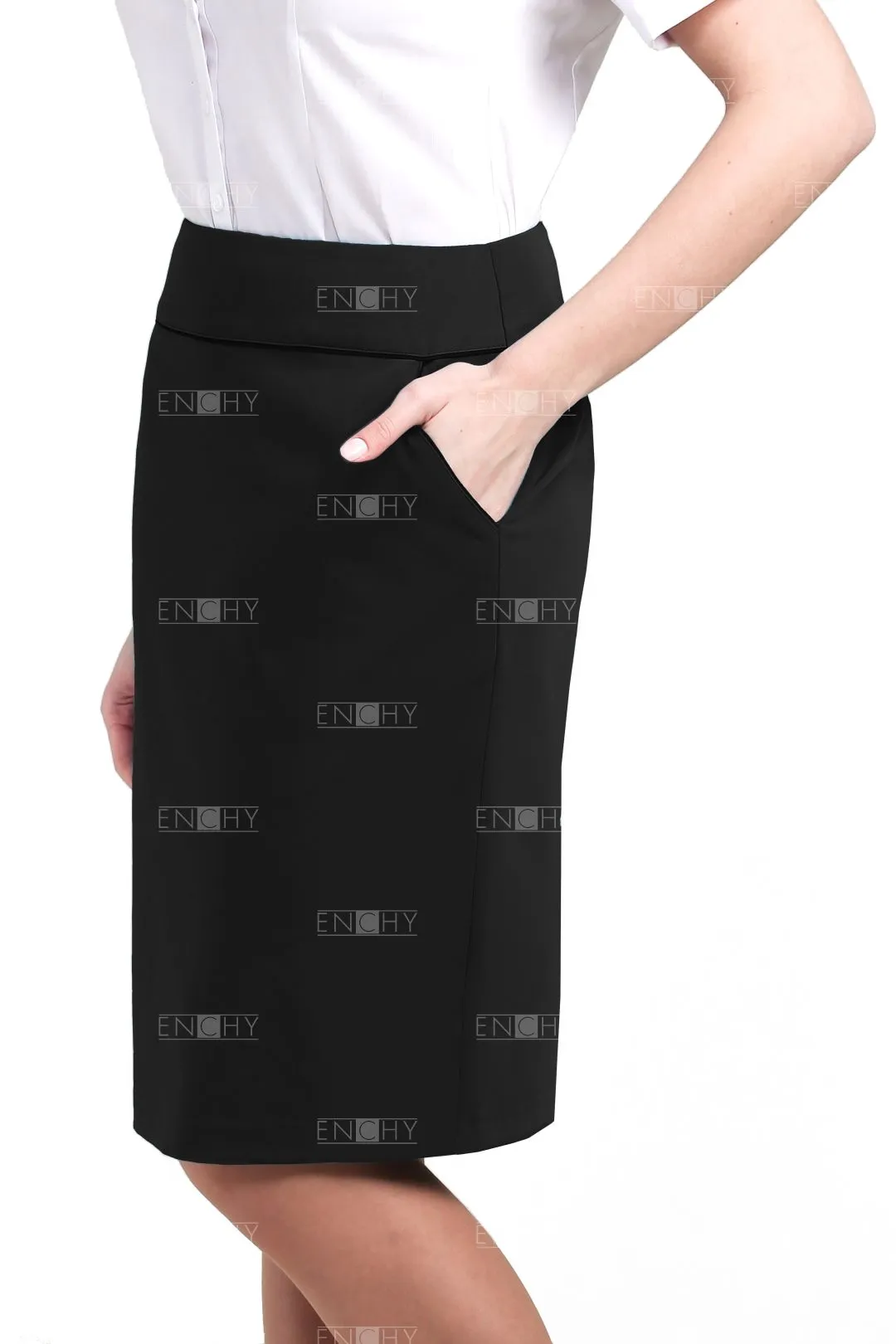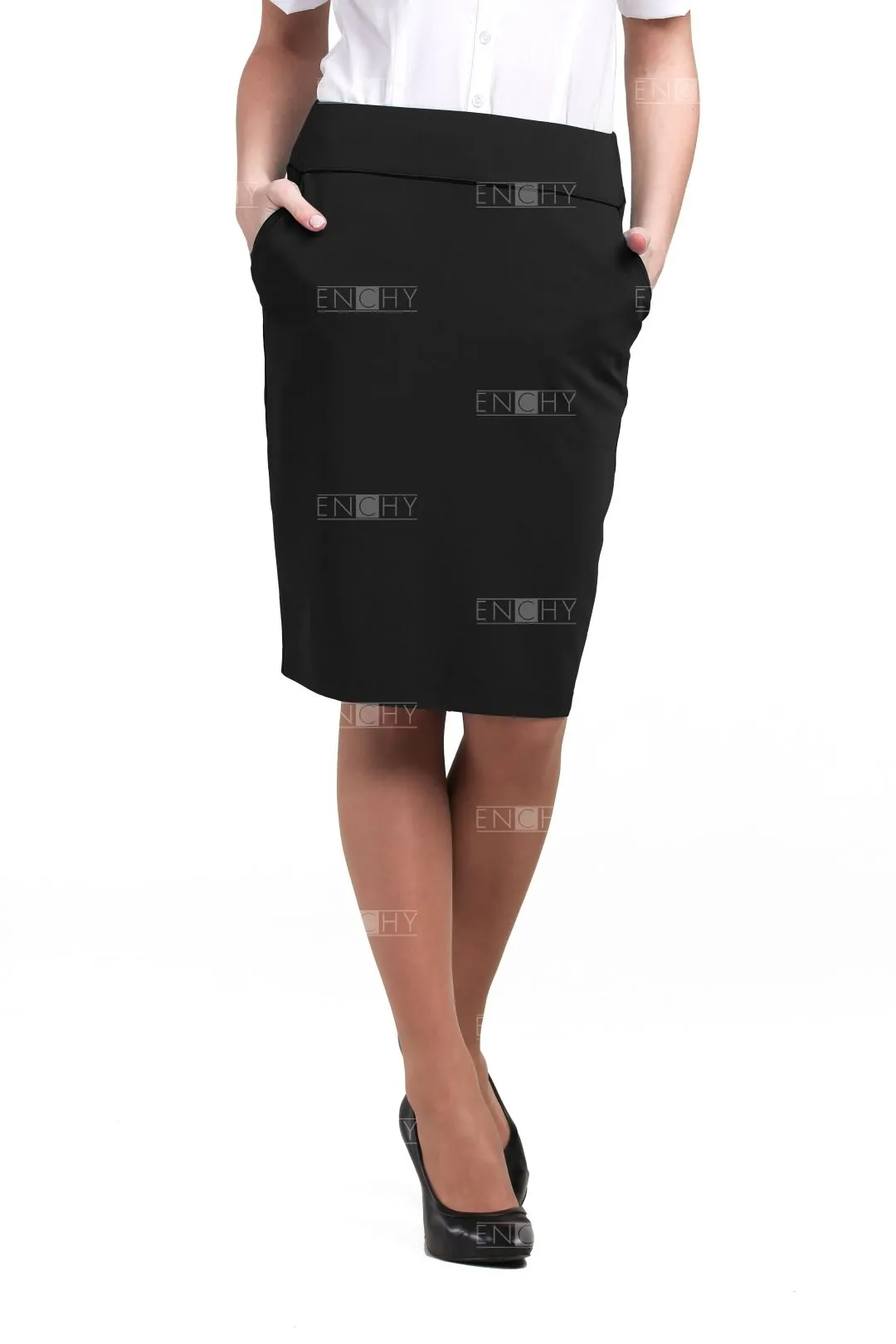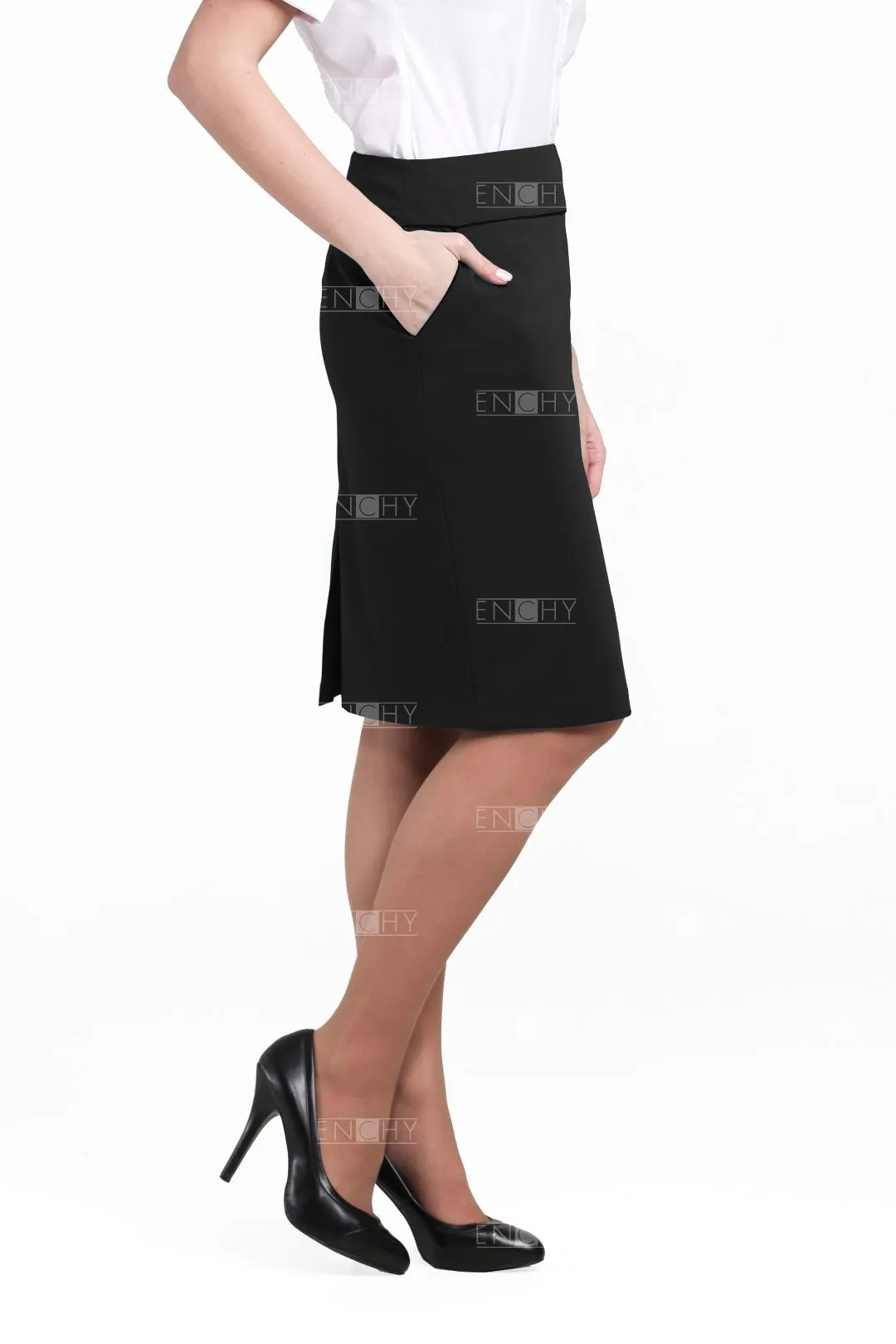 Юбка на подкладке с немного заниженной линией талии, широкой кокеткой и боковыми наклонными карманами.