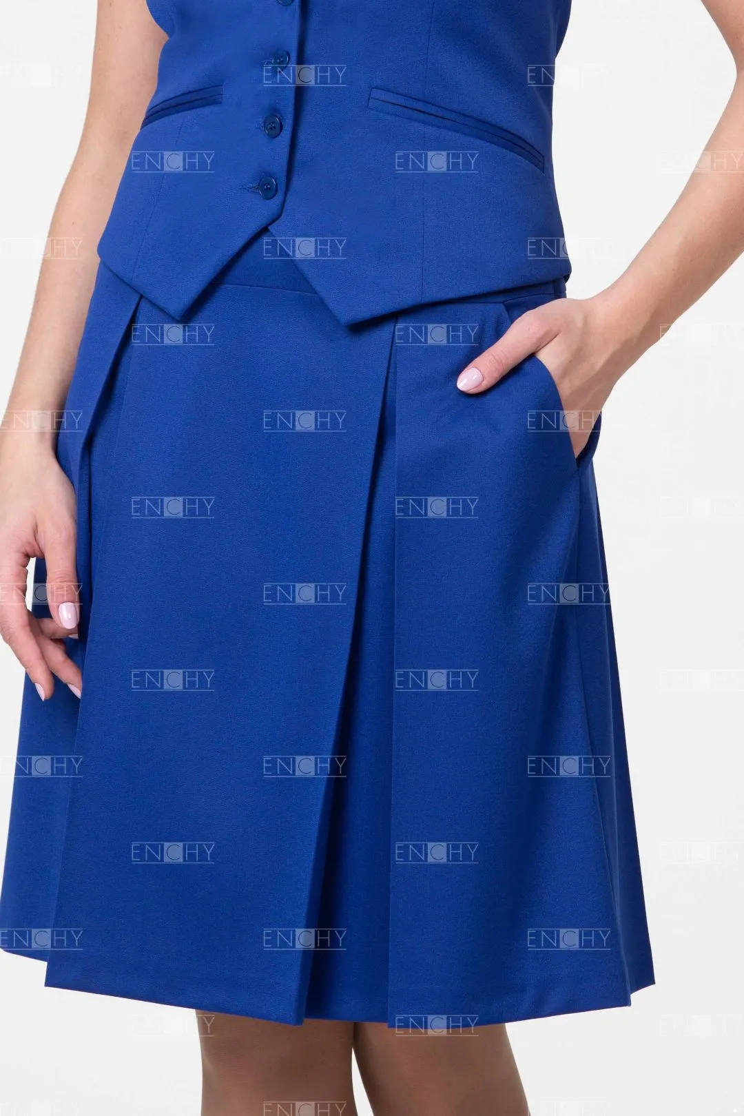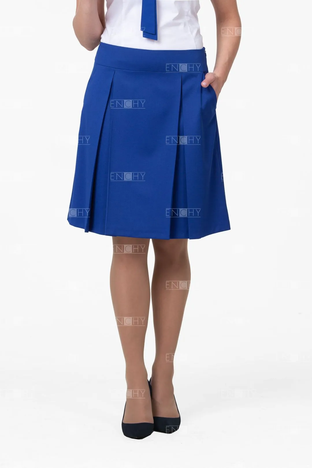 Модные тенденции зовут к женственности и элегантности - юбка со встречными складками, боковыми карманами и удобной широкой кокеткой - отлично дополнит офисный стиль вашего работника.