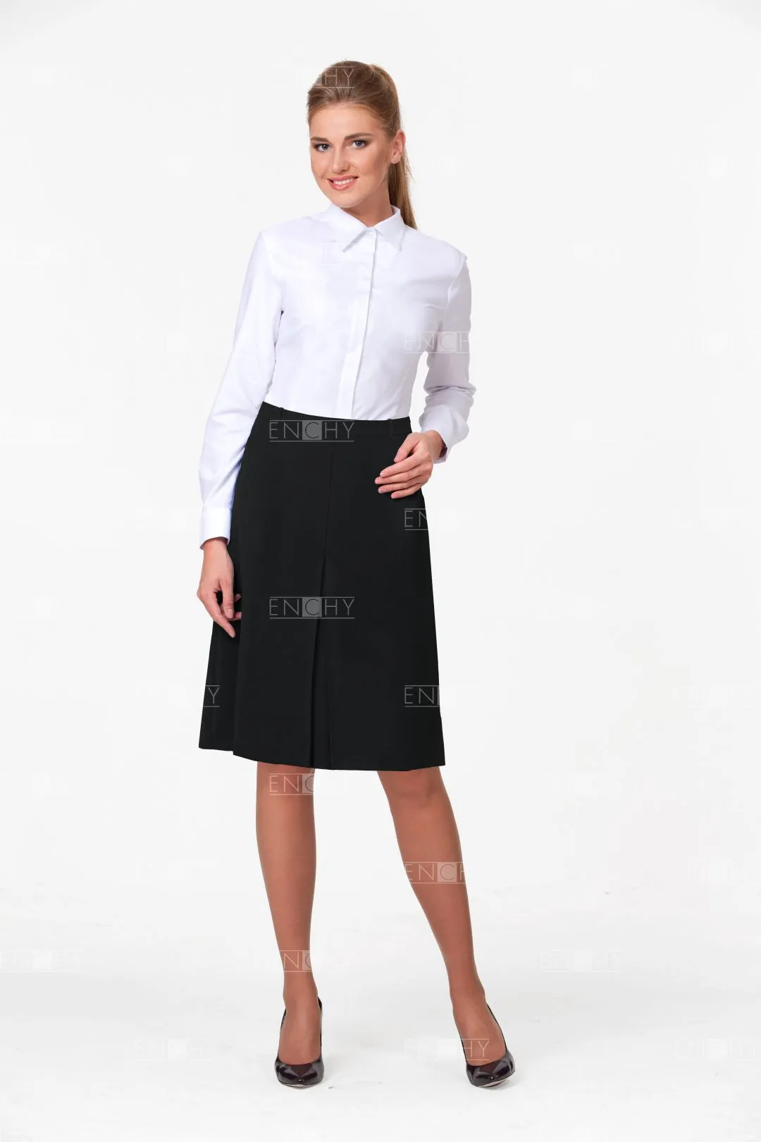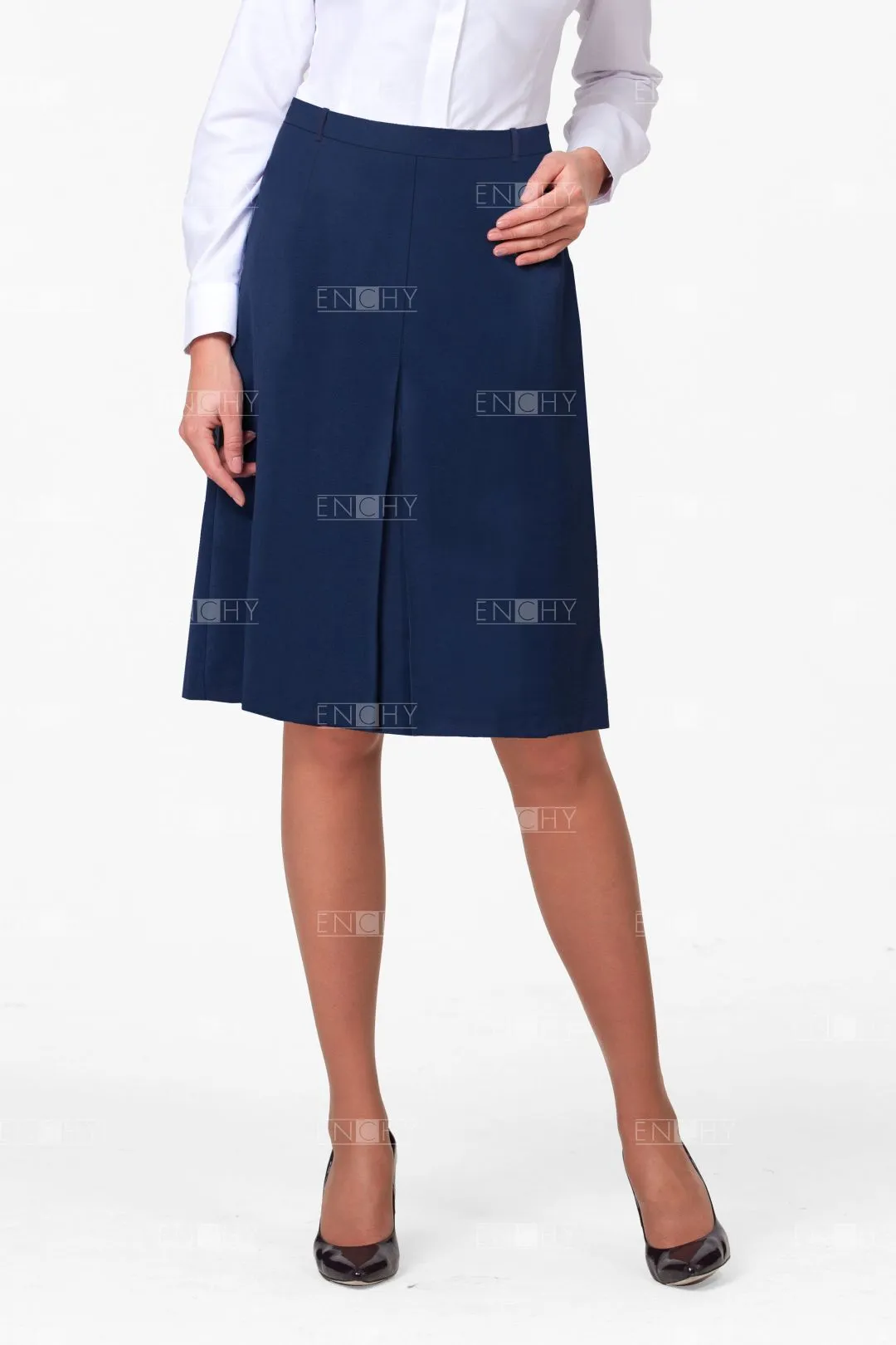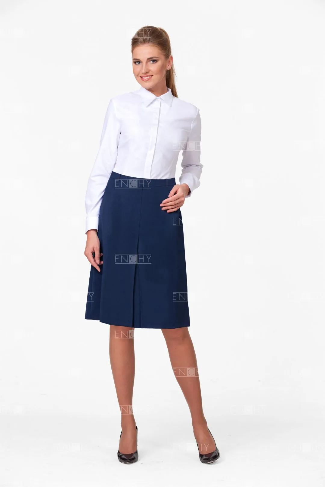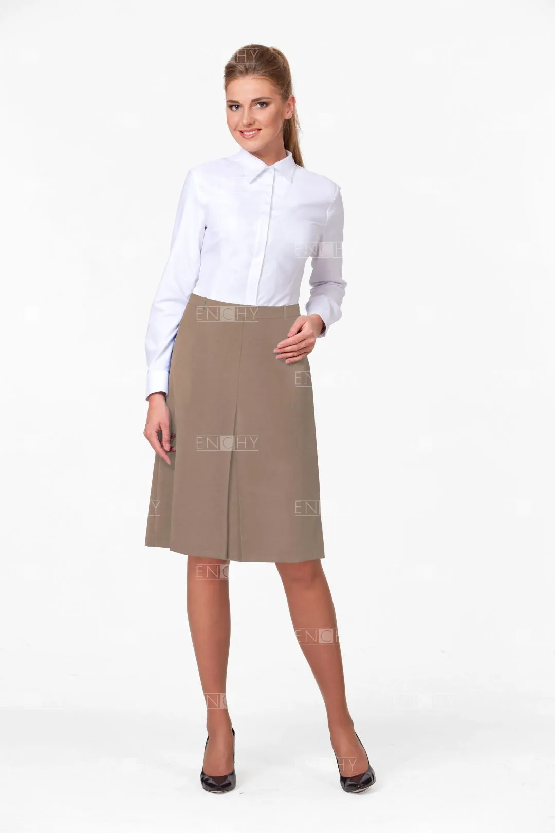 Стильная юбка с небольшим расклешением к низу. Посадка на талии, также на поясе имеются шлевки для ремешка. Особенностью юбки является складка в среднем шве переда.