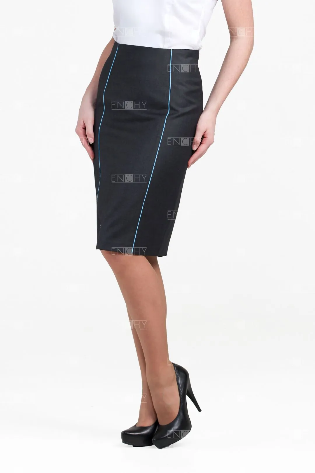 Стильная юбка на подкладке с вертикальными рельефами. Юбка без пояса, с посадкой на уровне талии.
