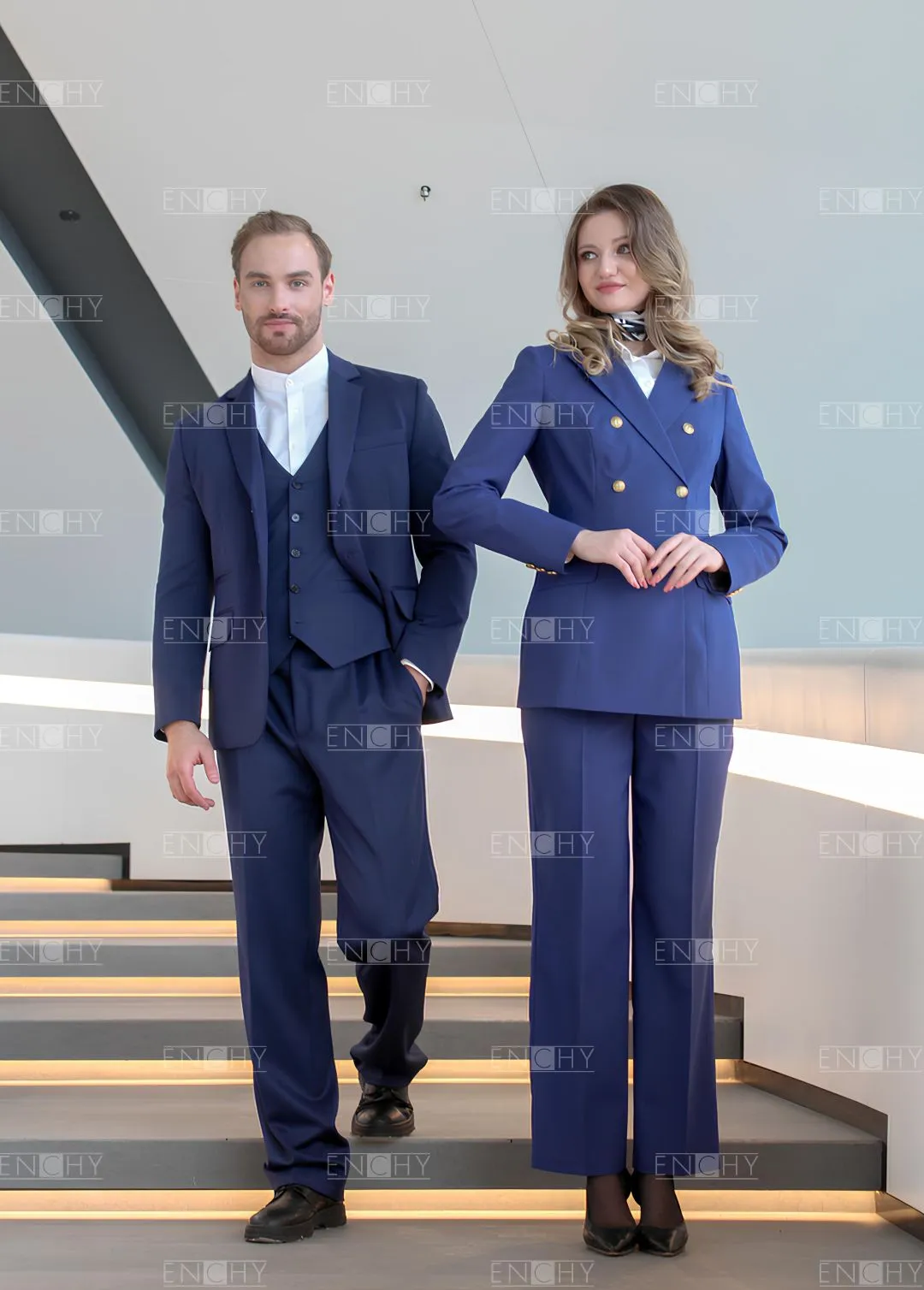Удлиненные жакеты, также как и жилеты, это бессмертный тренд в области корпоративной моды. Двубортная застежка на несколько пар пуговиц, пуговицы на рукавах, боковые прорезные карманы с клапаном, верхний карман с листочкой и фигурная форма лацканов - внимание к деталям гарантирует роскошный внешний вид ваших сотрудников. Посадка по фигуре обеспечена благодаря рельефным швам на переде и спинке, а в среднем шве спинки есть шлица для удобства.