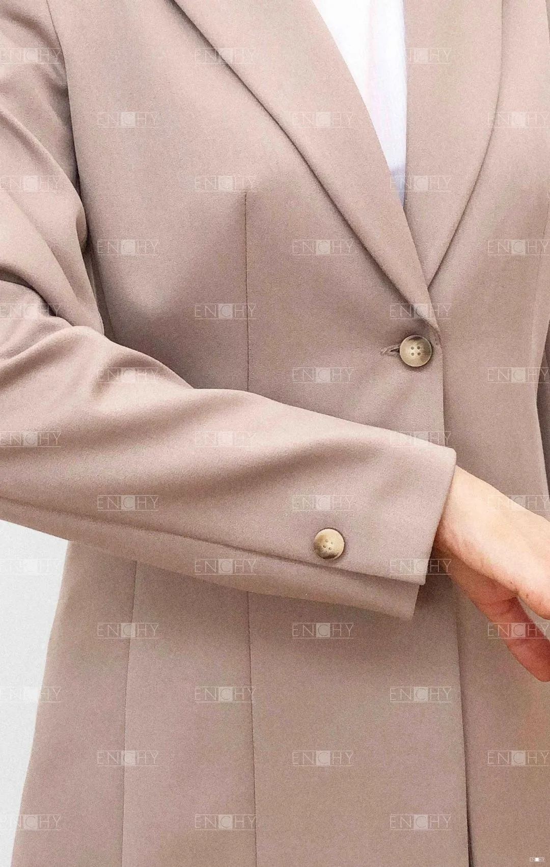Стильный удлиненный жакет с английским воротником- хит корпоративной моды. Жакет без карманов, с застежкой на одну пуговицу чуть ниже груди и шлицами по рукавам. Изящные линии вытачек на переде и спинке, чуть расширенная линия плеч визуально стройнят и вытягивают силуэт!