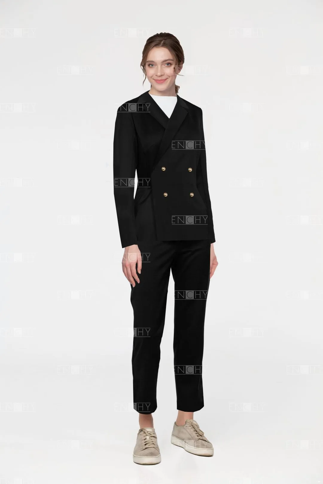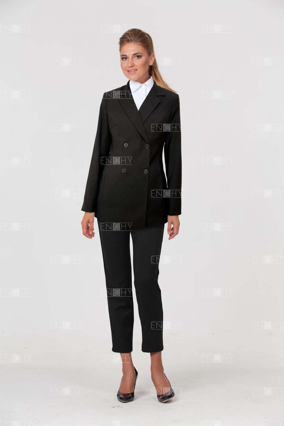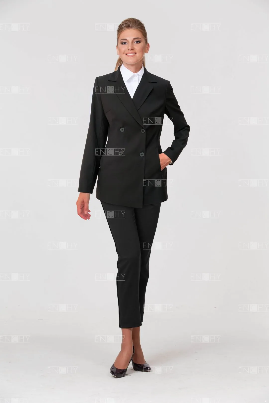 С двубортным женским жакетом легко составлять разноплановые комплекты, он подходит на все случаи жизни, гармонично дополняя привычные образы, ведь он подходит всем дамам без исключения.