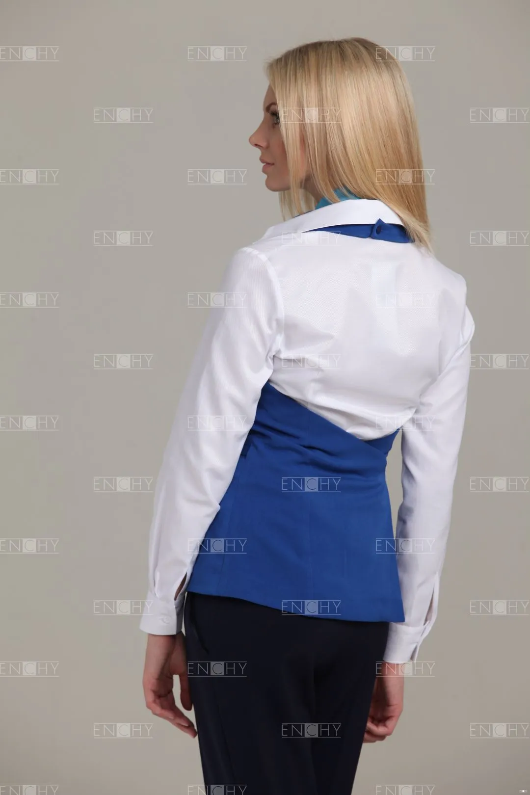 Оригинальный жилет с открытой спинкой, "американской проймой" с застежкой на шее сзади на пуговицы! Перед с имитацией супатной застежкой и рельефными швами. Спинка с запахом и рельефными швами, что позволяет регулировать жилет по размерам. Жилет надевается через голову, затем запахивается сзади. Дополняет образ пояс, который продевается в боковой шов и завязывается либо сзади, либо спереди на бант.