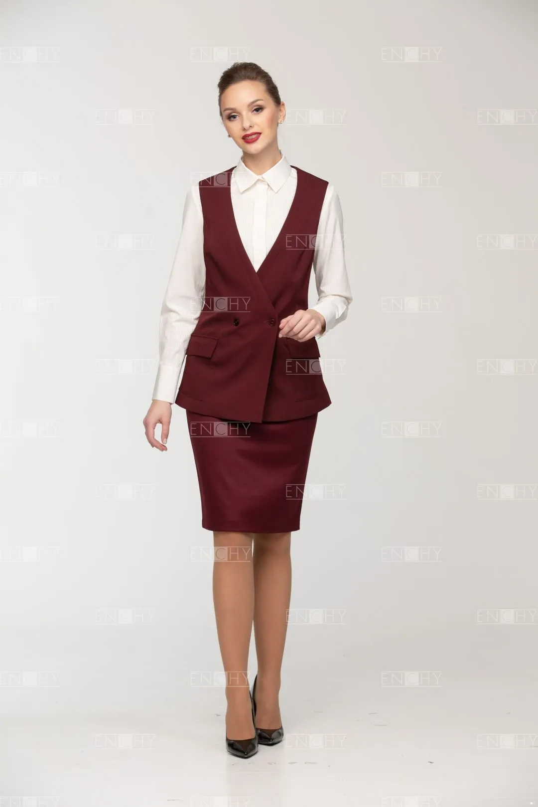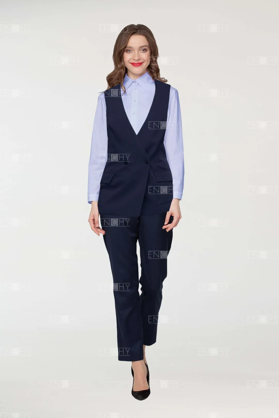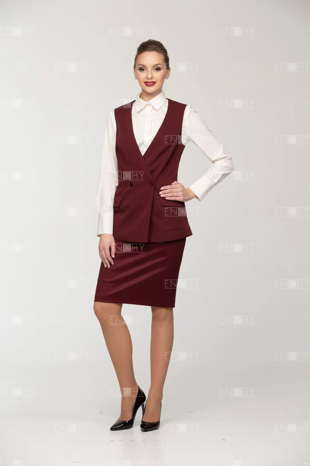 Великолепный вариант для комплекта в стиле модной классики— спрямленный удлиненный жилет. Благодаря рельефам жилет имеет хорошую посадку по фигуре. Углубленная линия выреза подчеркнута отрезной деталью, которую можно отделать кантом или контрастной тканью. Перед с двубортной застежкой на 2 пуговицы и накладными карманами с клапанами.