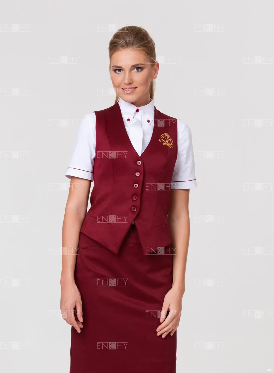 Изящно, элегантно и очень женственно! Узкий воротник-стойка и красивый вырез горловины завершается застежкой на 4 пуговицы. Изюминкой жилета являются рельефные швы переходящие в горизонтальный подрез, образуя острый угол, поддерживающий форму края борта. Модель отлично дополнит корпоративная вышивка!