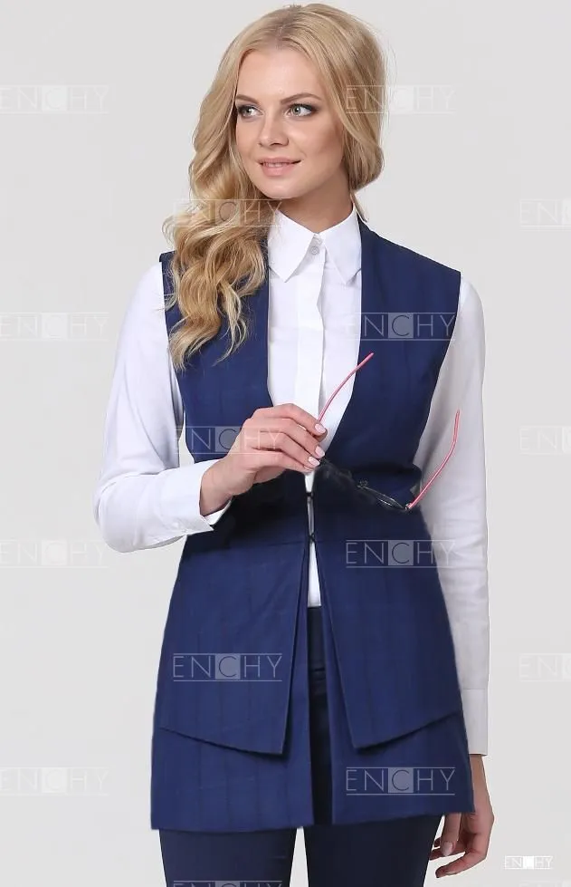 Удлиненный жилет, прямого силуэта - модная и удобная находка для любой фигуры. Жилет с элегантным кроем в стиле минимализм всегда будет оставаться на пике популярности. Воротник стойка, рельефы на переде и спинке, большие декоративные клапаны на переде— все эти детали формируют уникальный, запоминающийся стиль компании.