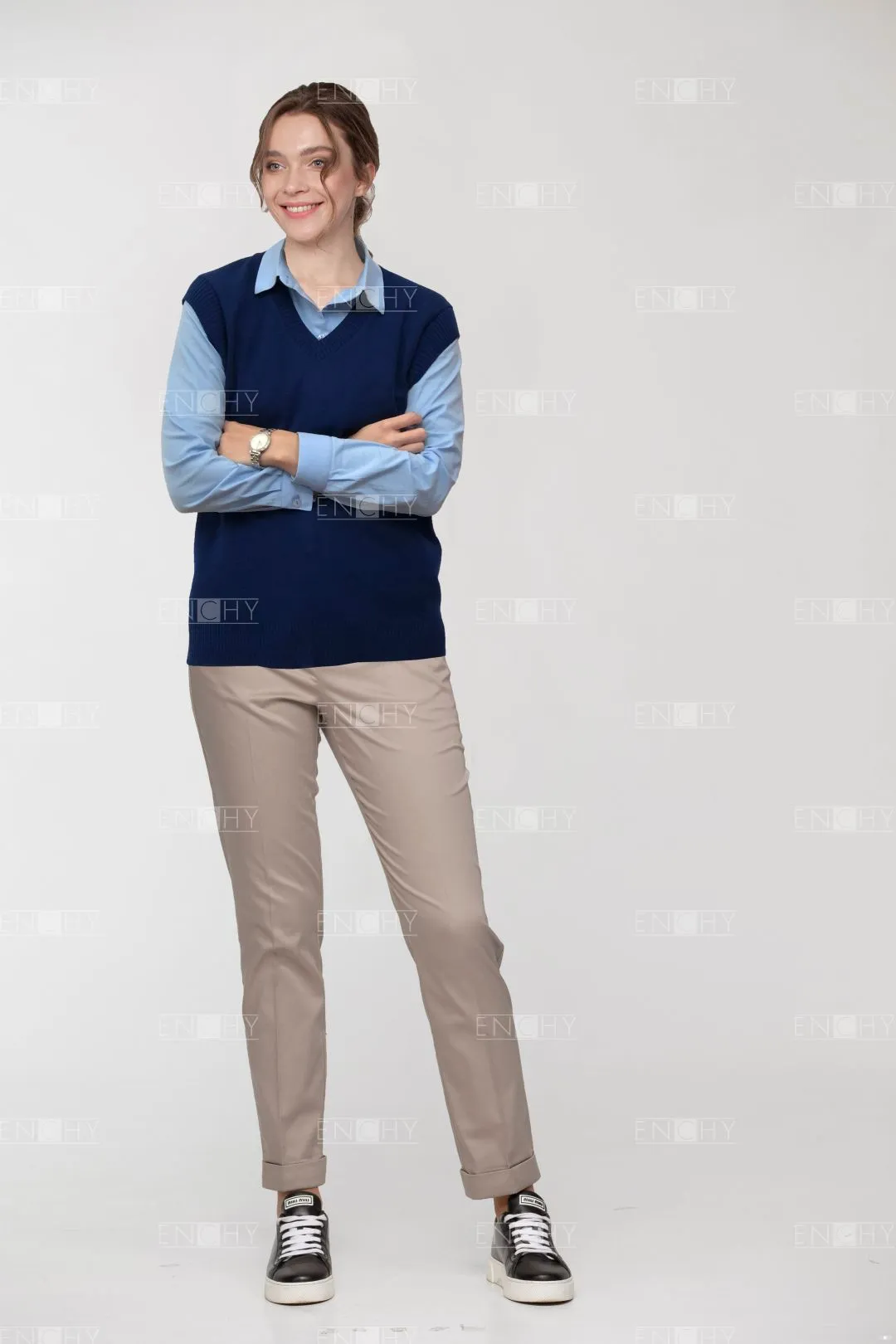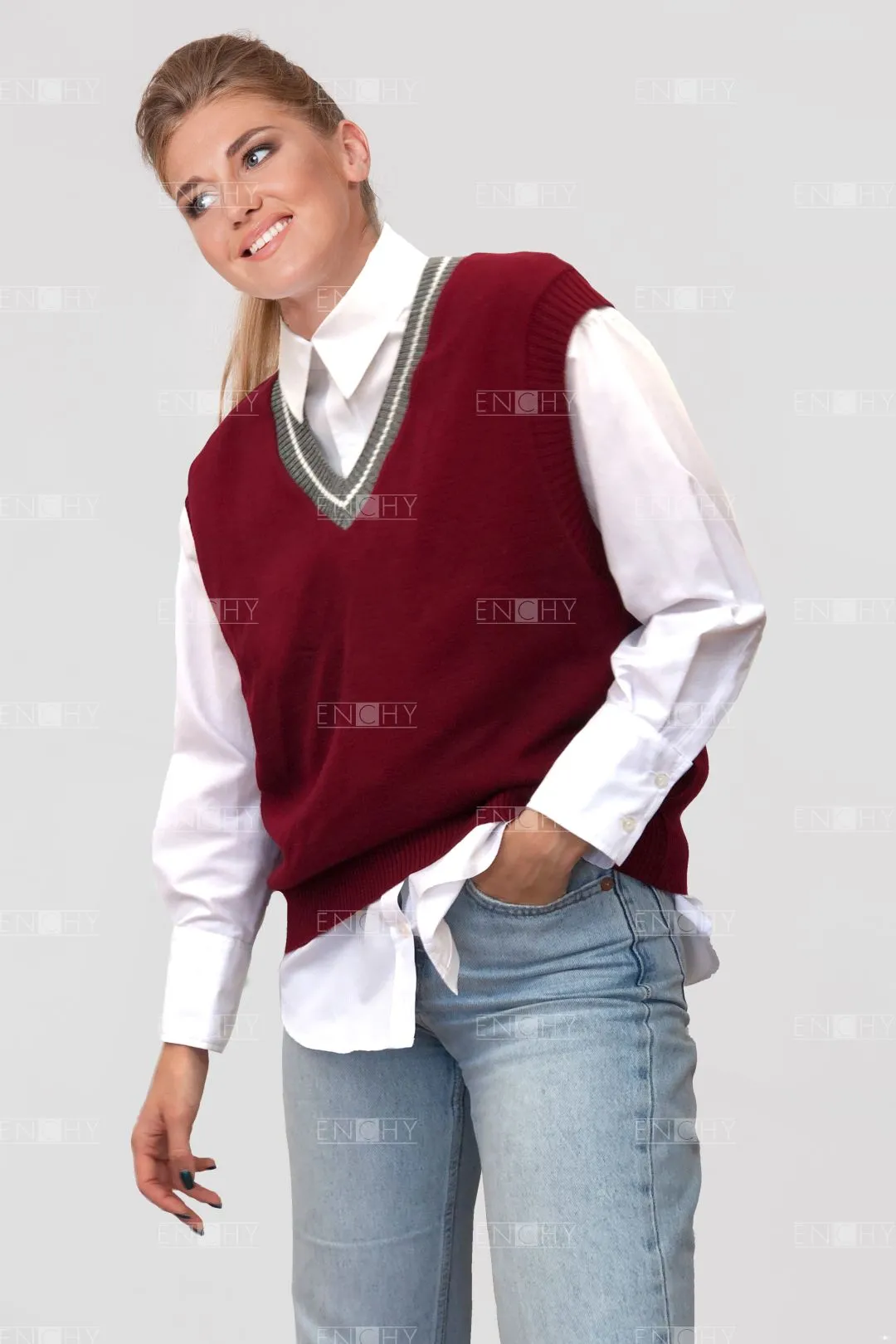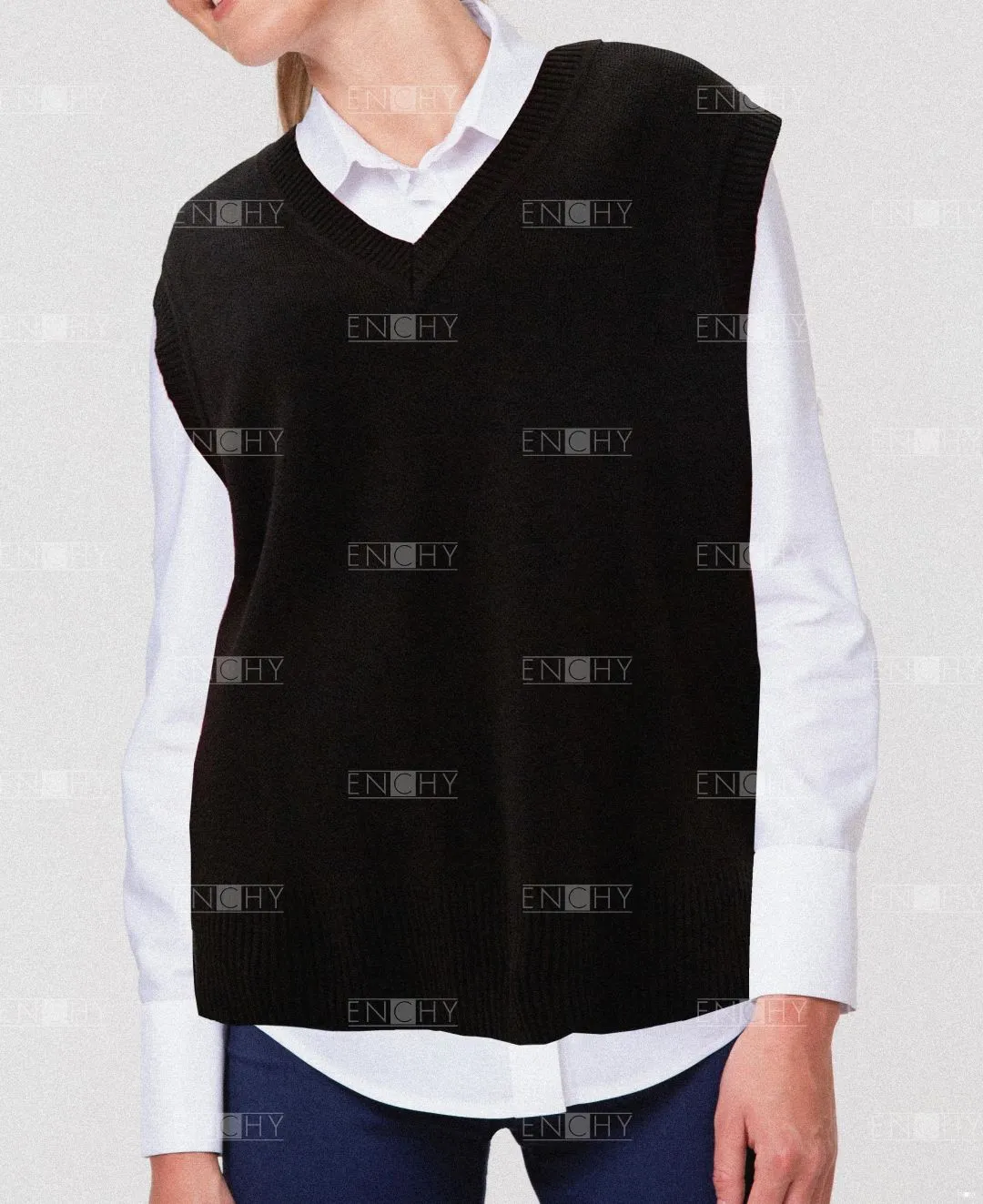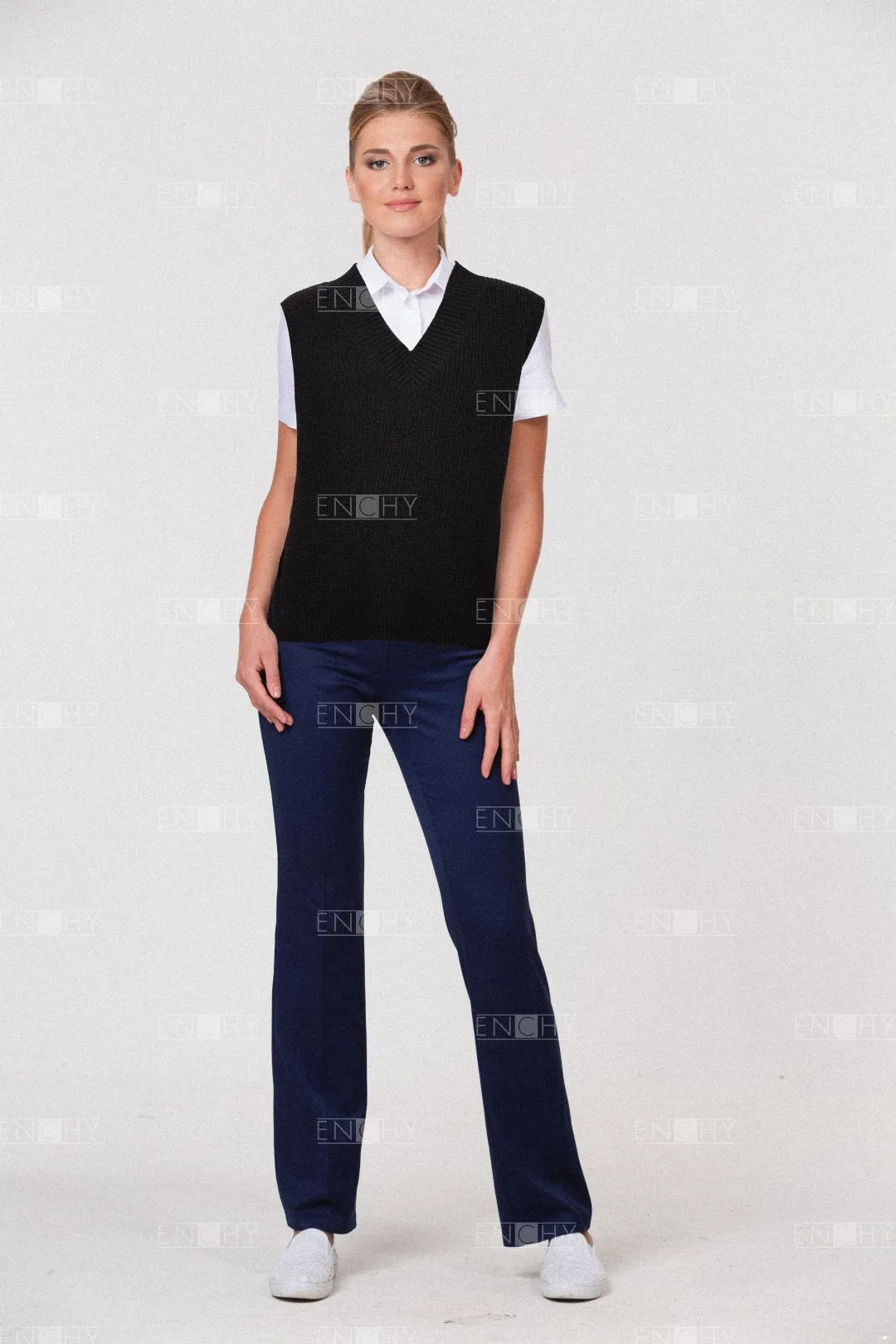 Современный вязаный жилет свободного силуэта с V-образным вырезом горловины и удлиненной линией плеча. Минимум деталей, максимум стиля!
