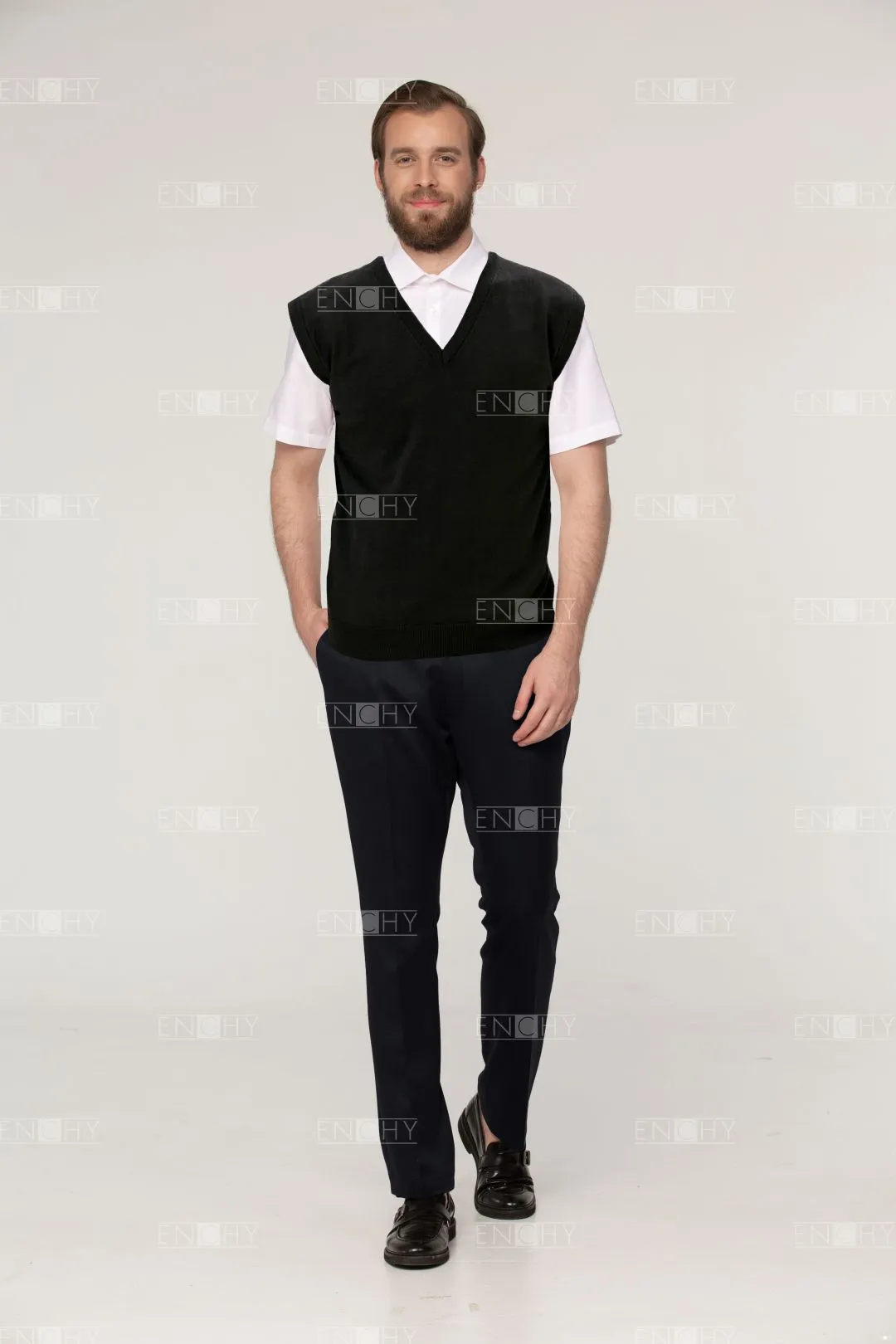 Современный вязаный жилет свободного силуэта с V-образным вырезом горловины и удлиненной линией плеча. Минимум деталей, максимум стиля!