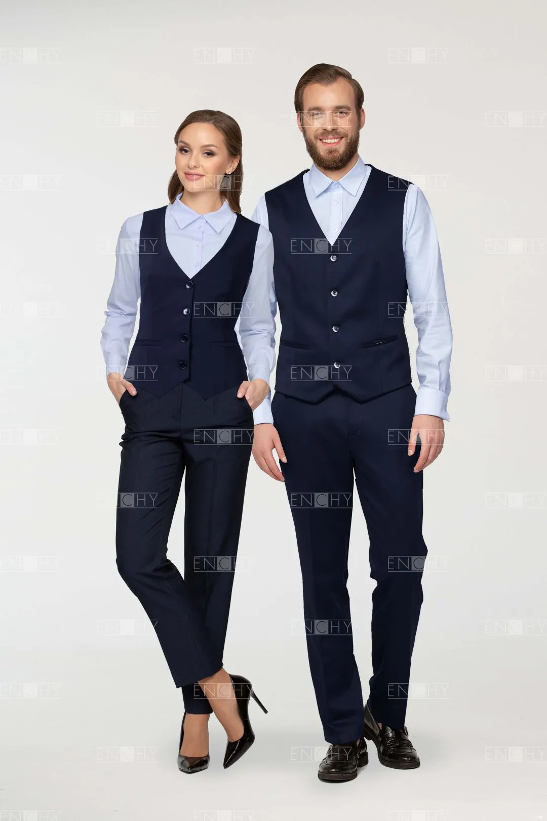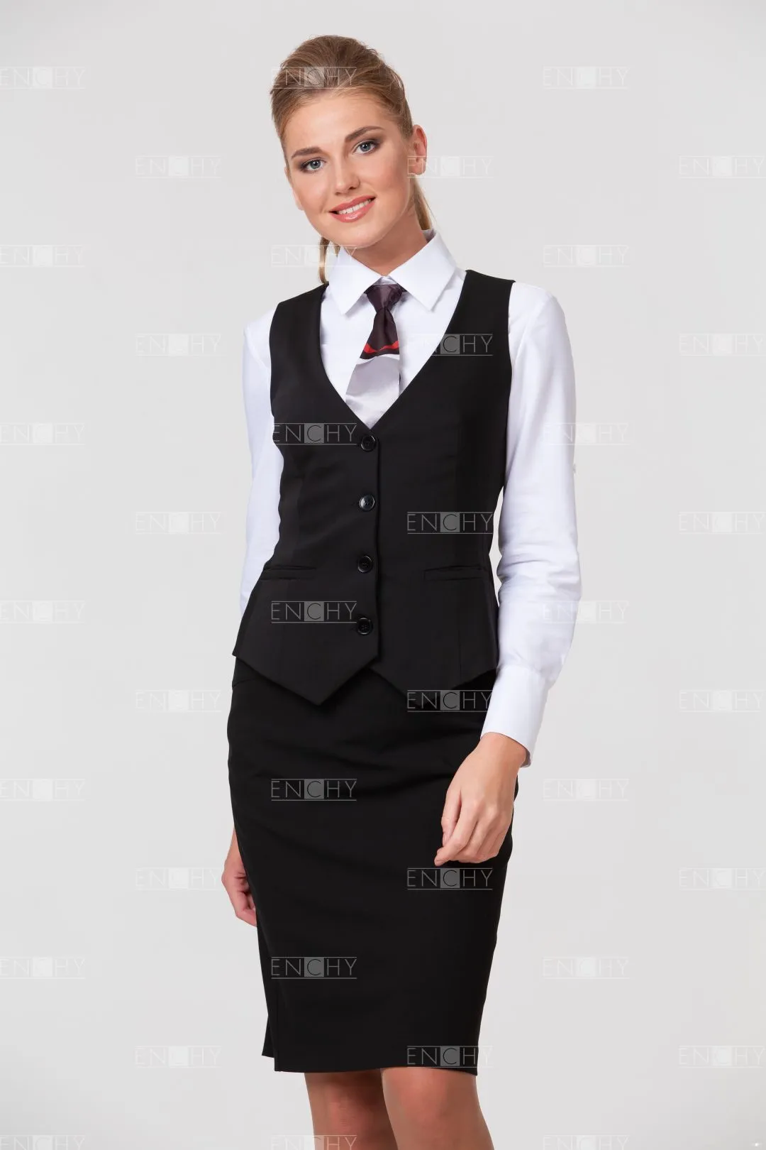 Отличный вариант классического жилета: отрезные бочки, талиевые вытачки, прорезные карманы с листочкой- все в этом жилете создано для того, чтобы подчеркнуть фигуру, а красивая линия выреза не оставит без внимания линию декольте и сделает правильный акцент на корпоративном платке или галстуке. Спинка со средним швом, с хлястиком на пряжке для регулировки объема, срез низа имеет фигурную линию поддерживающую по форме линию низе переда.