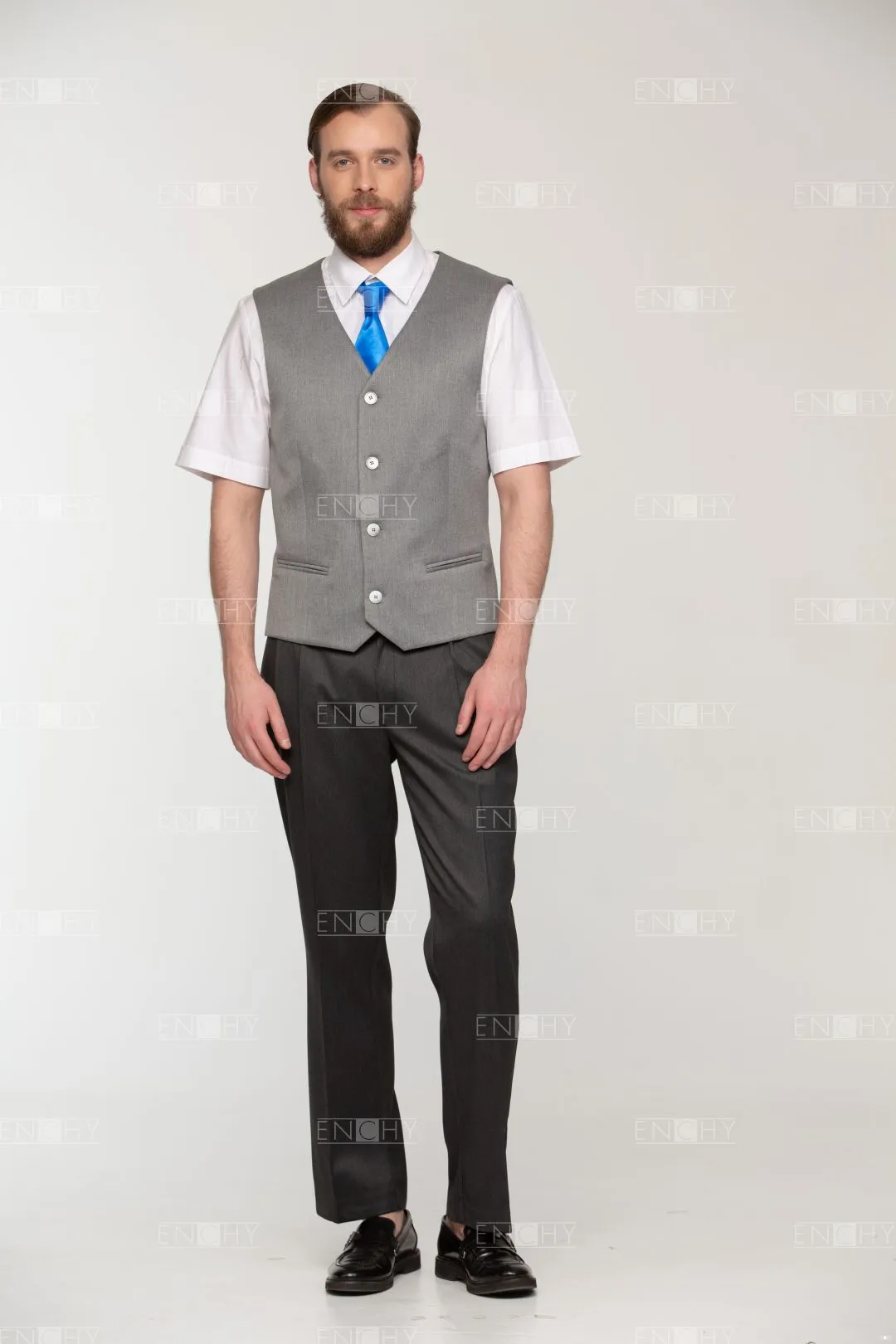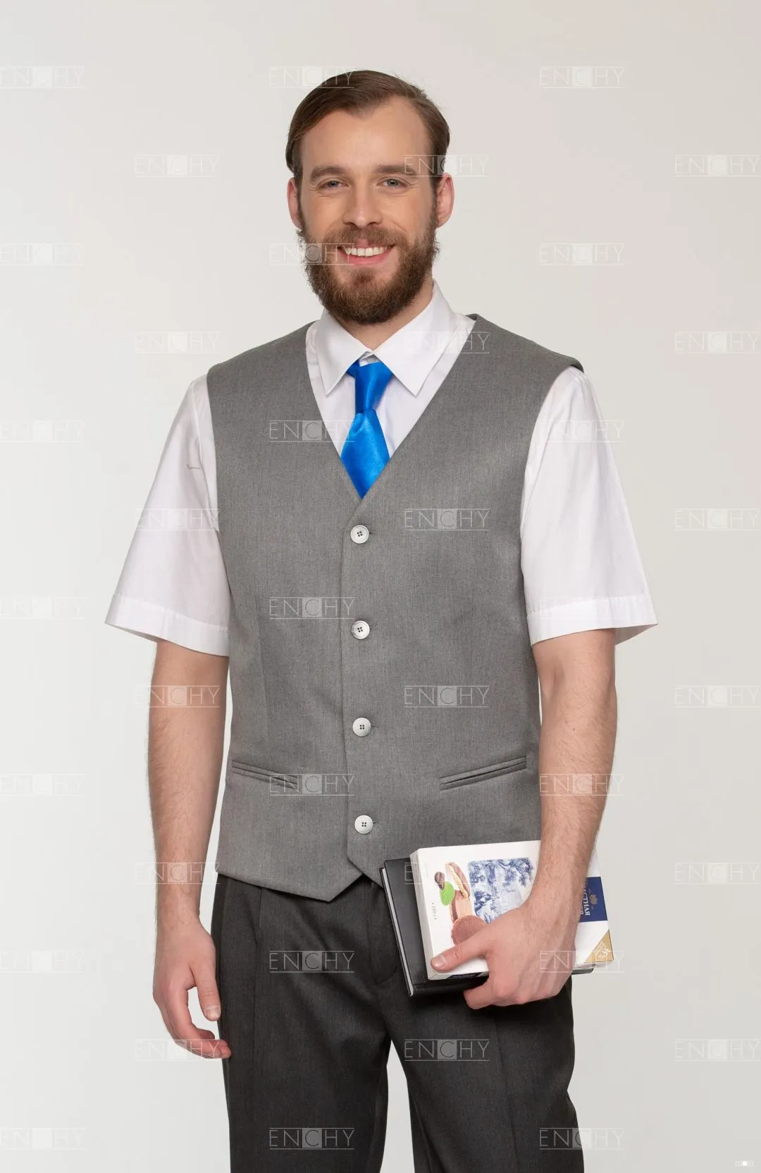 Жилет на подкладке красивой классической формы. Застежка на 4 пуговицы, прорезные карманы, оформление линии борта уголками. Этот жилет создаст достойный бизнес-образ ваших сотрудников. Спинку жилета можно выполнить из атласа.