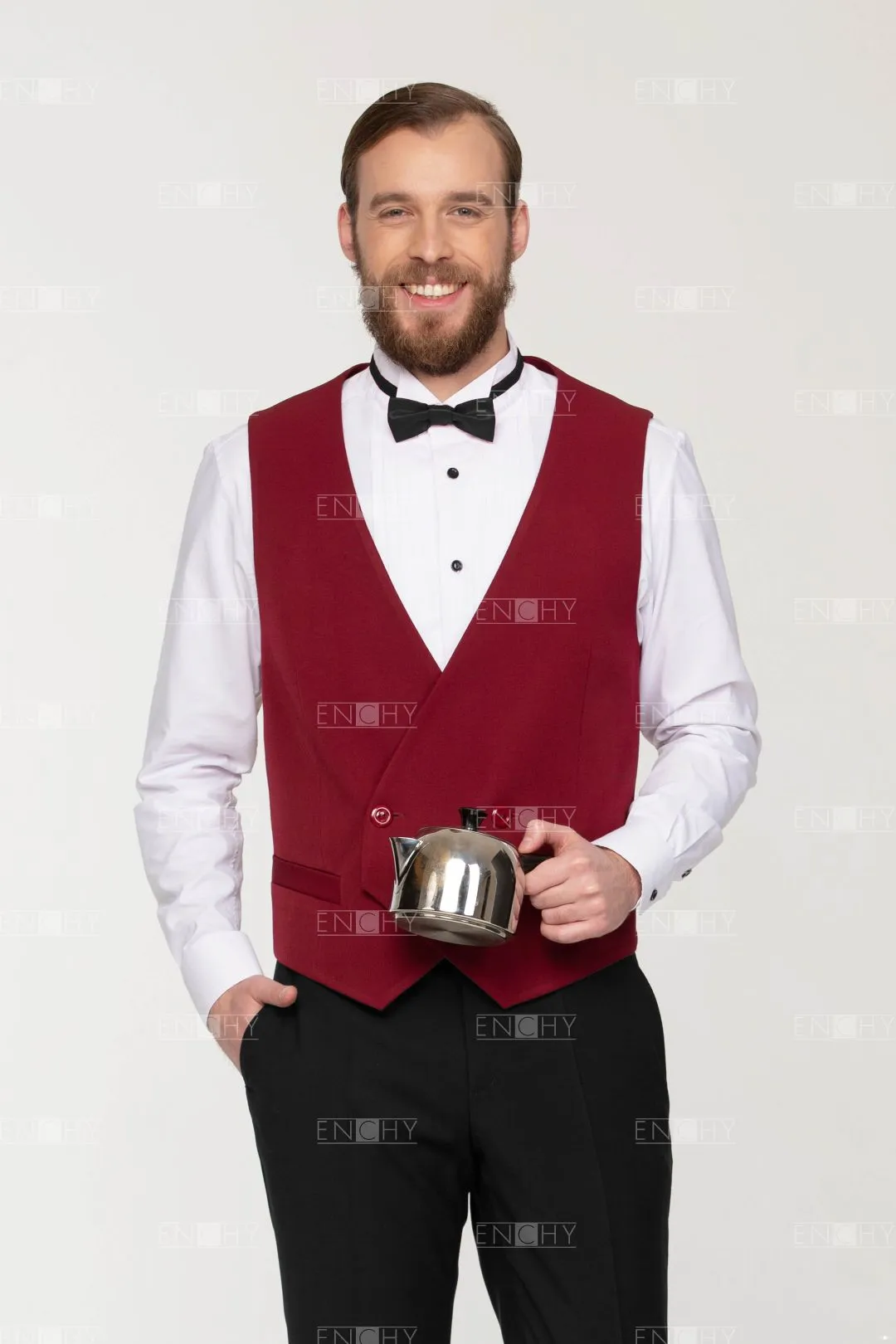 Оригинальная линия борта этого жилета делает модель особенной. Спереди застежка на 2 пуговицы и прорезные карманы. Сзади завязывающийся хлястик для регулировки ширины.
