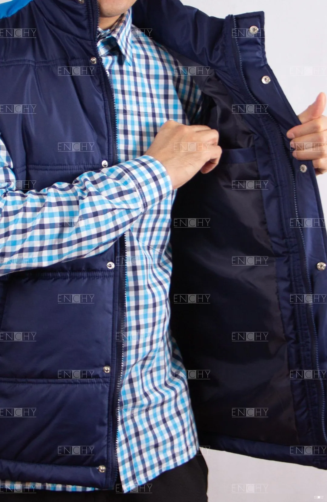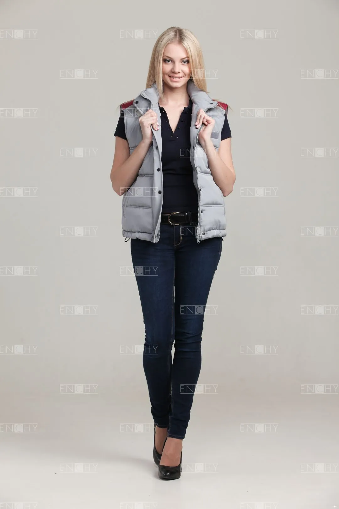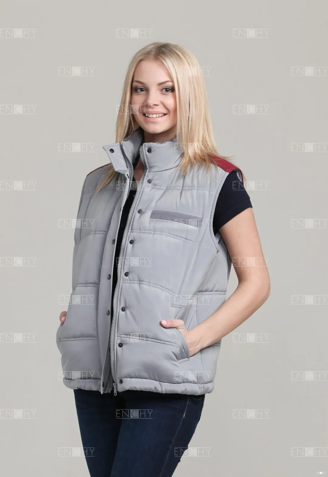 Стильный утепленный жилет модного кроя. Актуальная стежка спереди и на спинке. Кокетка на спинке, которую можно выполнить в контрастном цвете. Спереди карманы, расположенные наклонно. Воротник-стойка, застежка на пробивные кнопки. Жилет - унисекс, застежка на мужскую сторону.